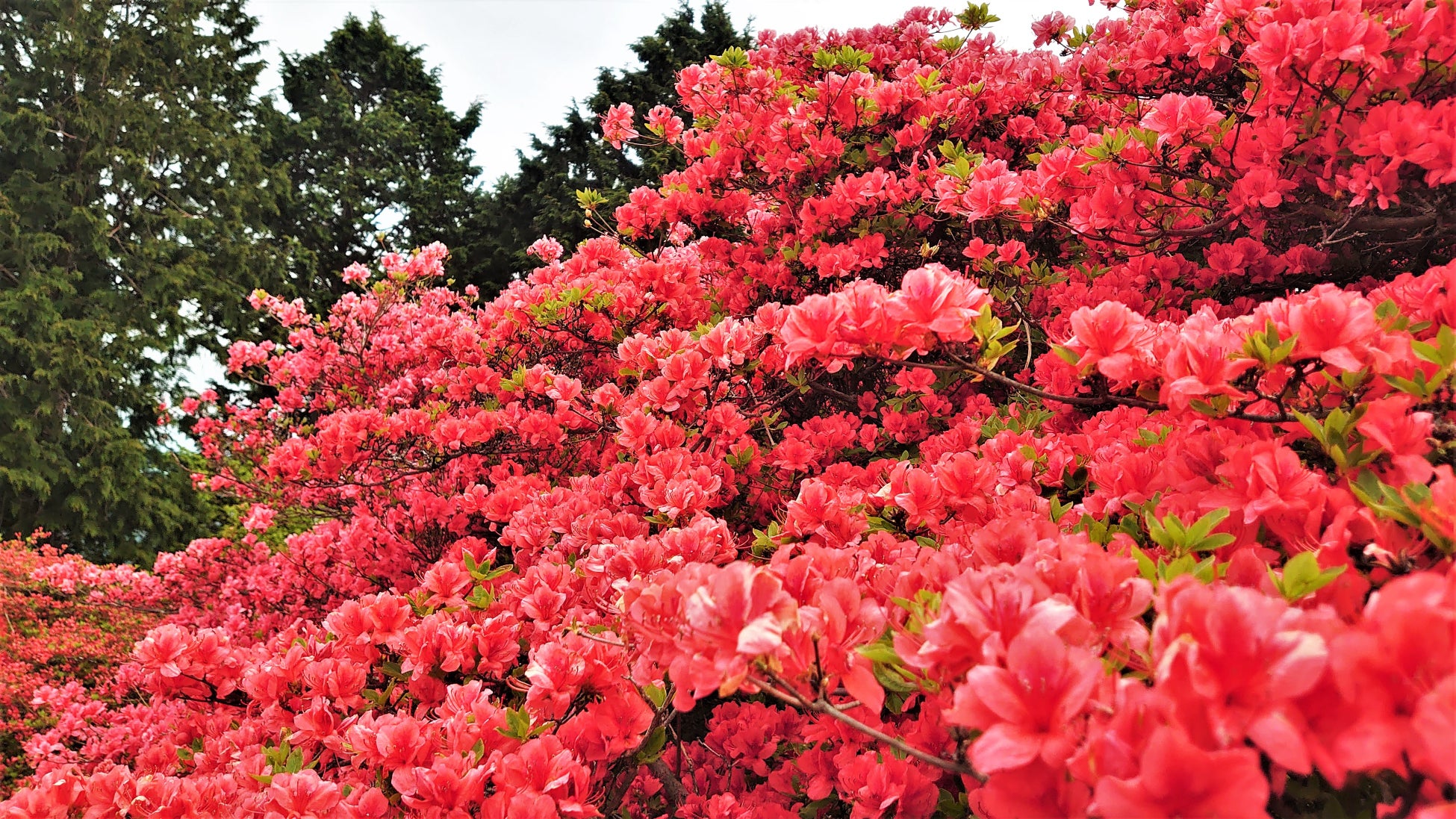 南三陸町のツツジが見頃。山頂が赤く染まる田束山のふもとで「田束山つつじまつり」、トレイルで田束山を楽しむイベント同時開催。
