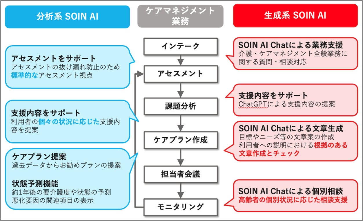 《ケアマネジメント業務における分析系SOIN AIと生成系 SOIN AIの位置付け》