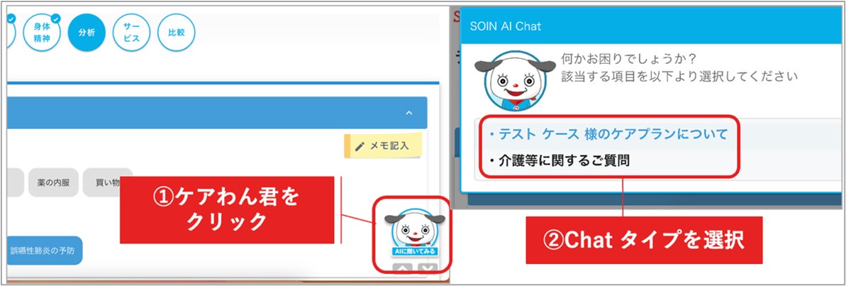 1. SOINのケアプラン編集画面右下の「ケアわん君」のアイコンをクリック