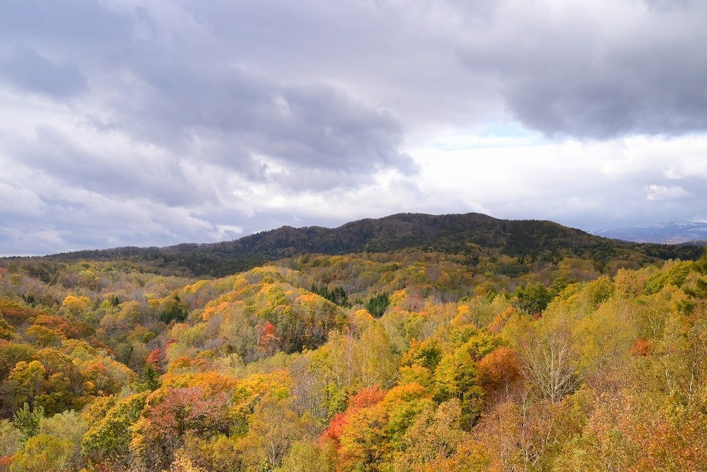 黄色のカツラやシラカバ、赤やオレンジのカエデ、緑のままの針葉樹など滝野の景色が色とりどりに染まっていきます。