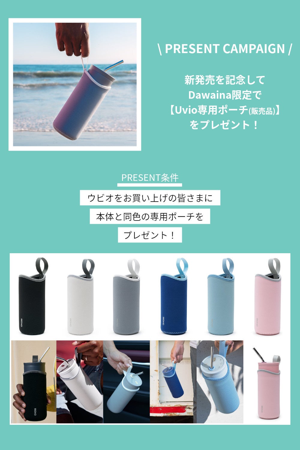 新発売を記念して、Dawaina公式オンラインショップもしくはDawaina大阪店にてUvioをお買い上げいただいた皆様に、【Uvio専用ポーチ(販売品)】をプレゼントいたします!