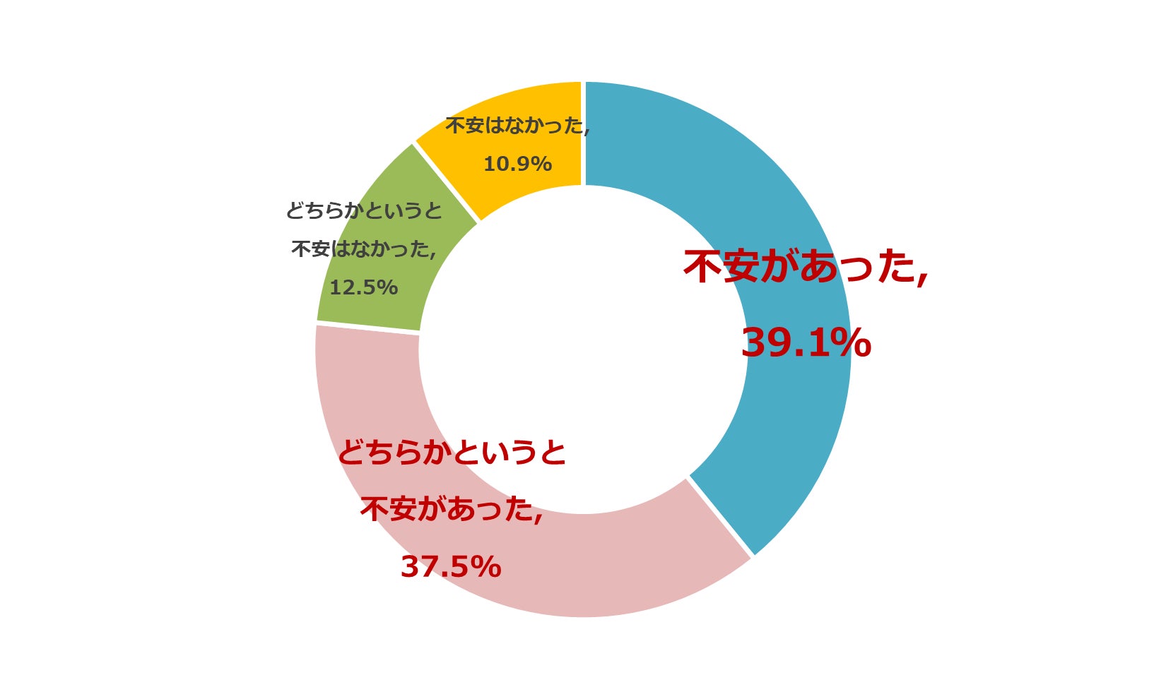 次に、子どものメガネデビューに対して、不安があったか質問したところ、76.6%が「不安があった」(不安があった:39.1%、どちらかというと不安があった:37.5%)と回答しました。