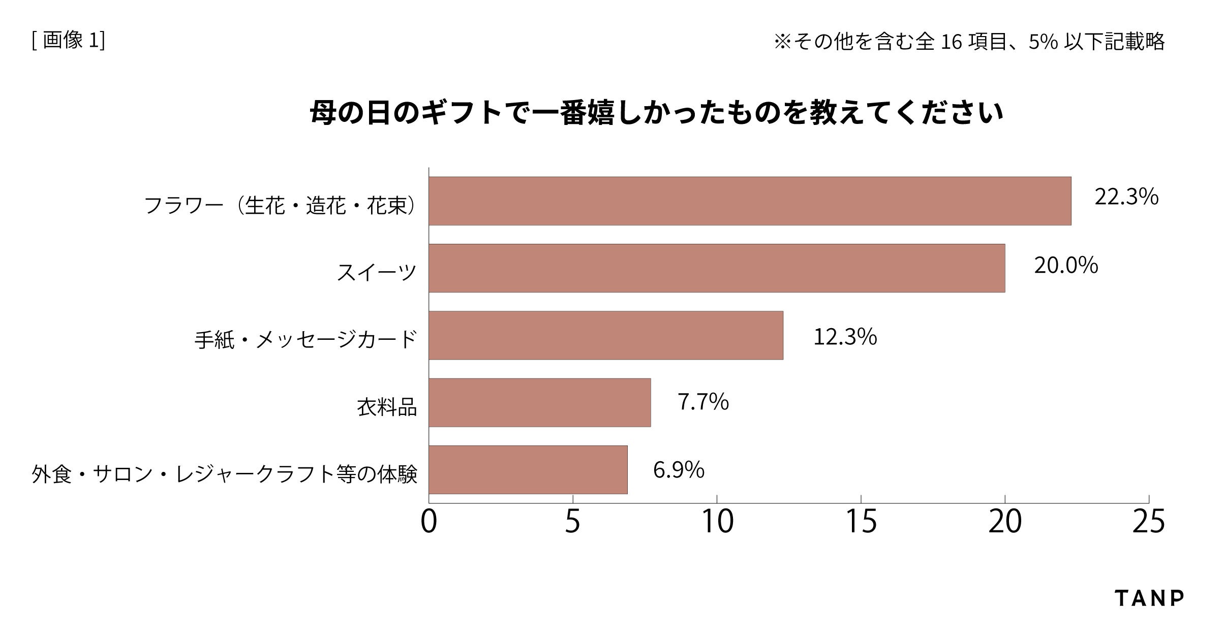 2022年「TANP」母の日ギフト調査、定番の花・スイーツギフトに続き「手紙・衣料品」が人気上位に