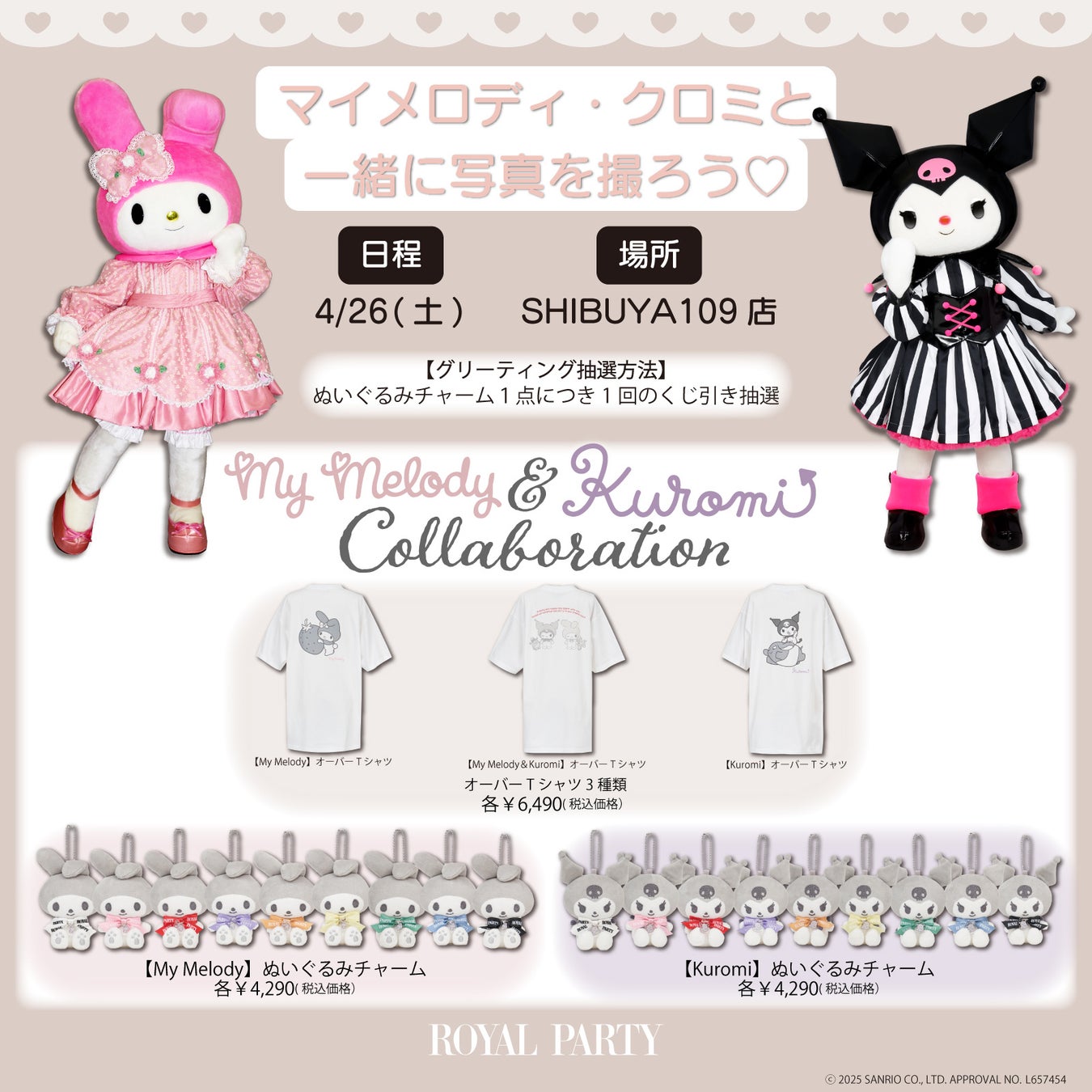 マイメロディ×ピピ、クロミ×バクのペアデザインにも注目!さらに!SHIBUYA109にて3ショットが撮れるグリーティングイベントも開催決定!