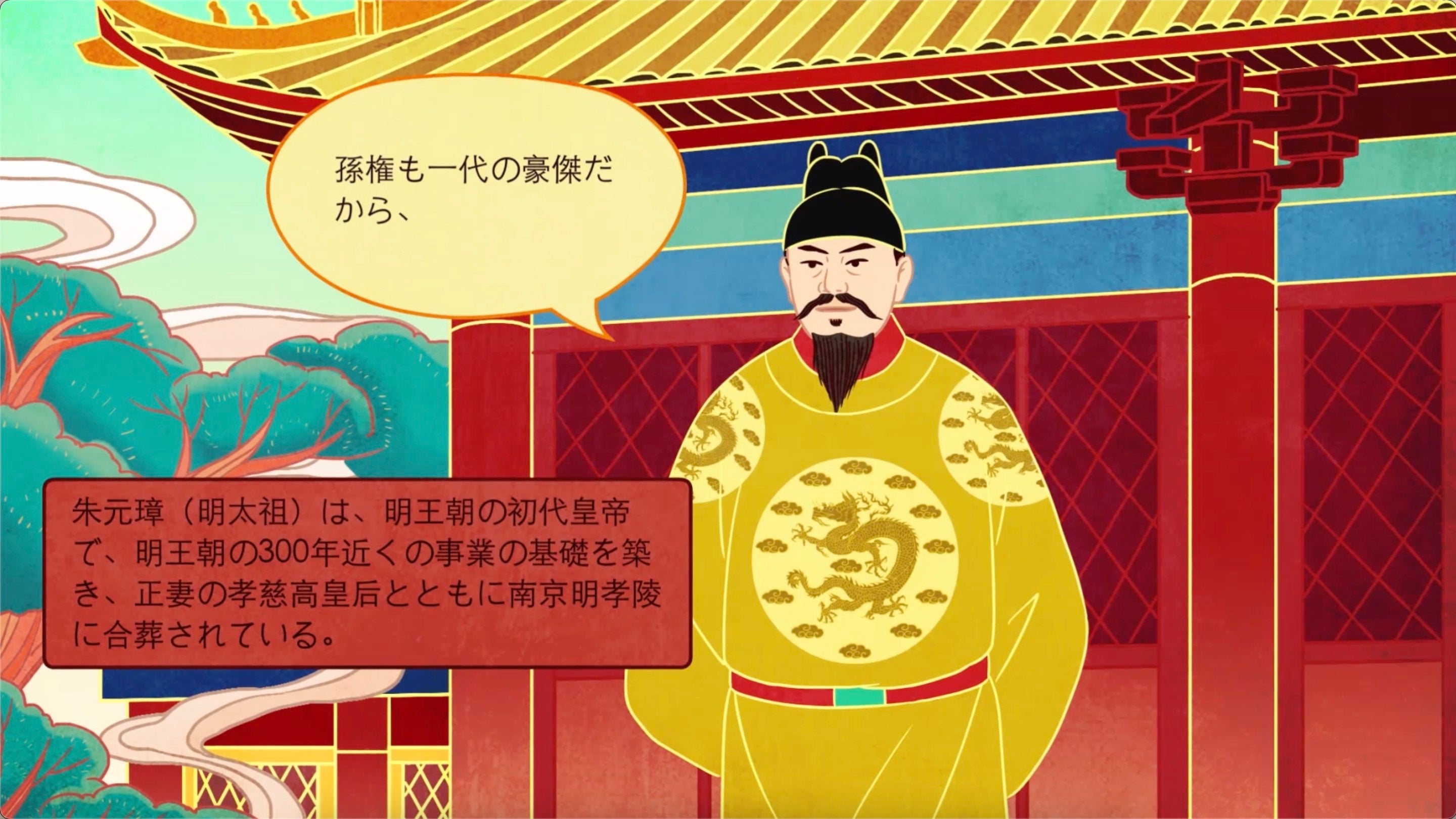当該アニメは、優雅で爽やかな画風とフランクでユーモラスな口調で、南京の文化と歴史を伝えています。三国時代の孫権が「建康」を首都と定めた時点から南京という都市の起源を遡り、「明孝陵」「秦淮灯会」「鴨食文化」の3つの章から構成され、南京を代表する独自の明文化や灯籠文化、鴨食文化を取り上げています。また、ナレーションと1人語りの二つの手法を組み合わせることで、分かりやすくてユーモアのある作りになっています。特に明孝陵や鴨をキャラクター化し、現代の言葉を使用することで、内容を理解しやすく、印象に残りやすいものにしています
