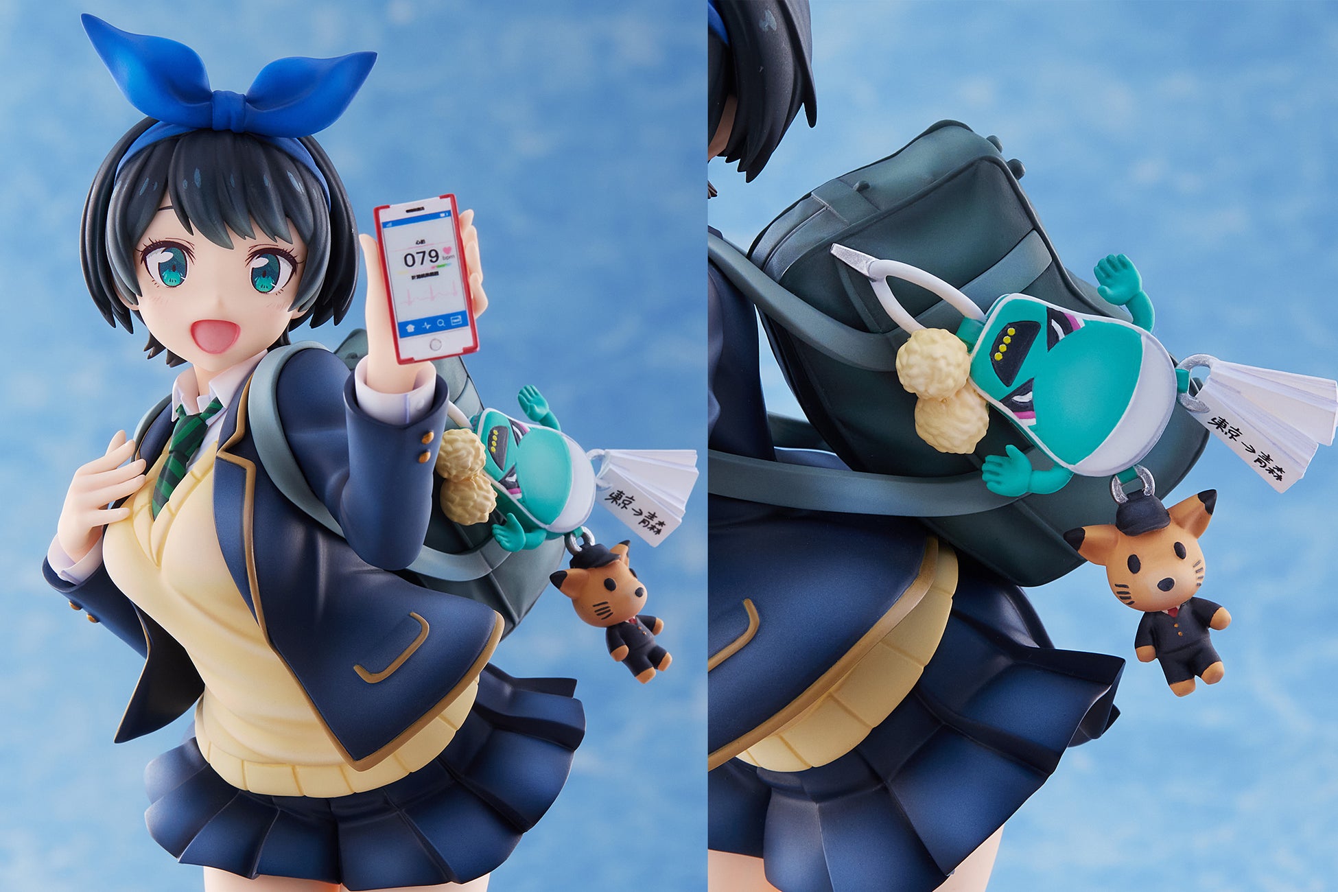 カバンにつけたキーホルダーなどの小物まで忠実に再現、手に持ったスマートフォンには彼女の心拍数が…。