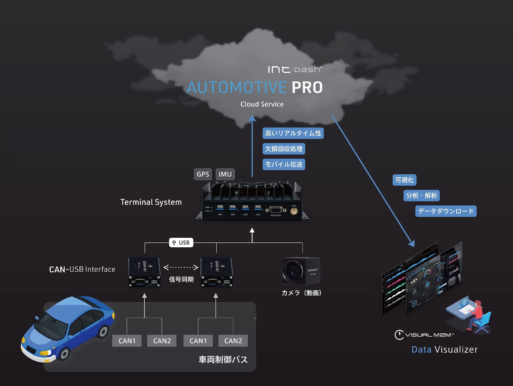 CAN/CAN-FD DAQ Bundleでは、遠隔計測に必要な車載向けハードウェアと高速データ伝送プラットフォーム『intdash』をベースにしたクラウドサービスをオールインワンのセットにしてシンプルなメニューで構成し、迅速な導入が可能なサービスバンドル形態でご提供します。