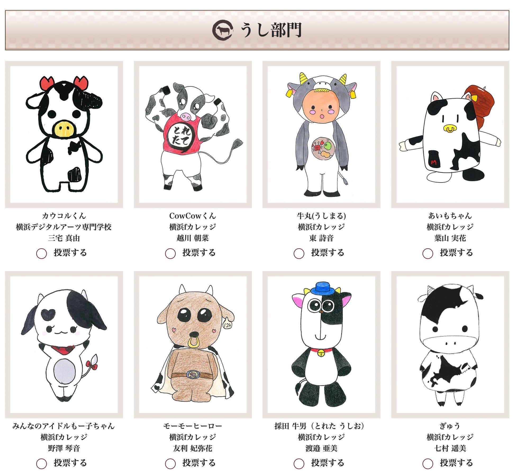 とれたてねっとキャラクターコンテスト 特設Webサイト内で投票。