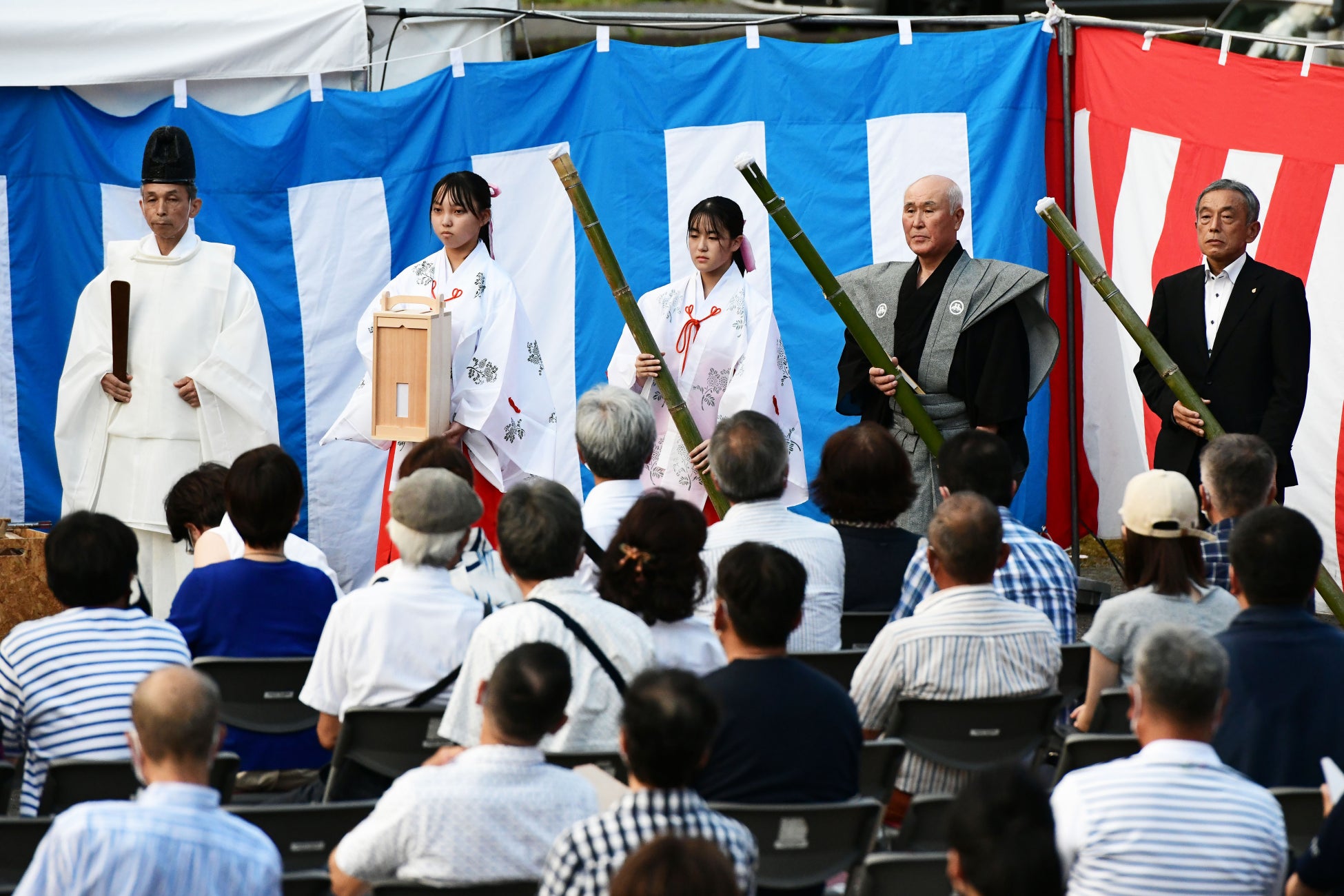 ■火入れ式(梅田紀壽宮司、梅田雅夫神官、巫女2人(池田中学校))