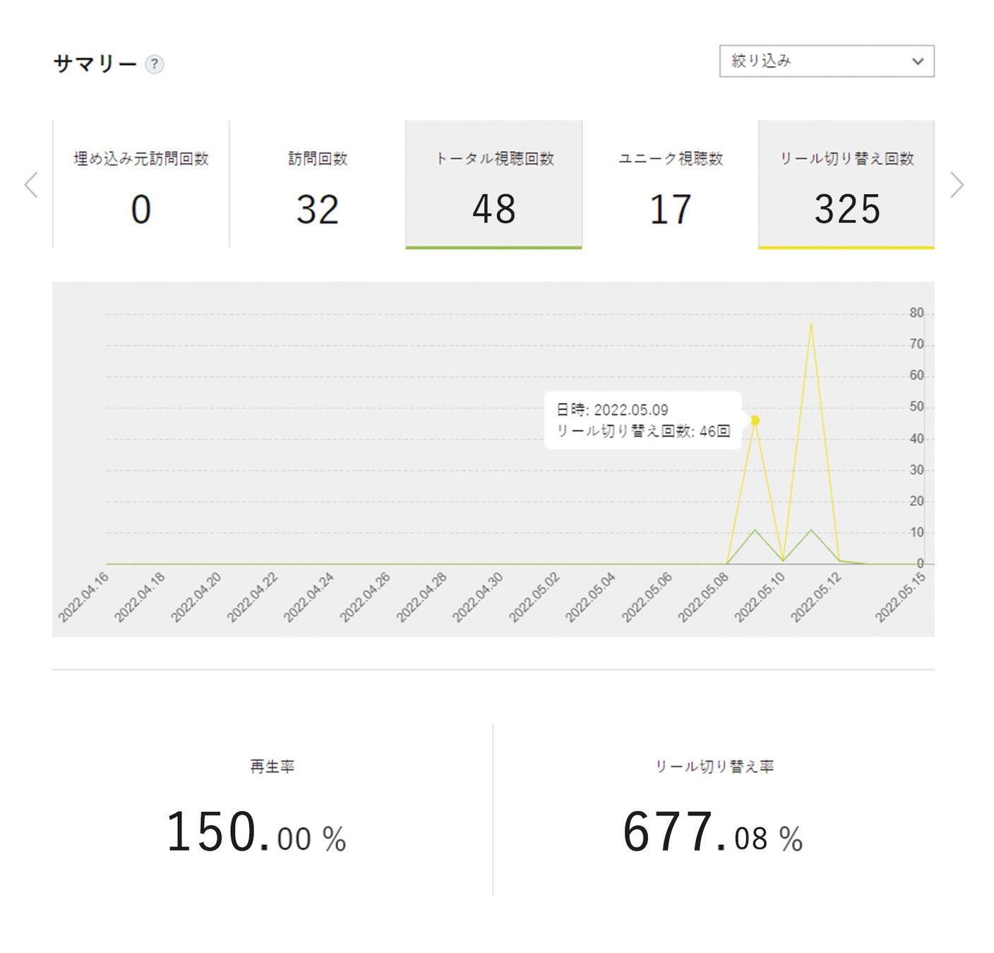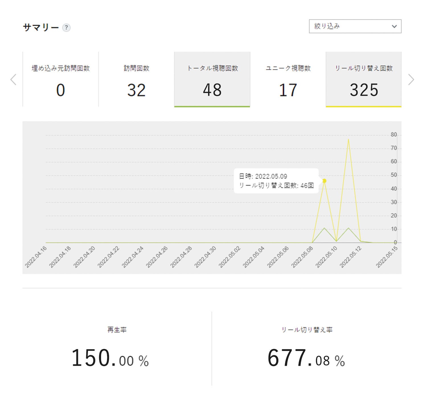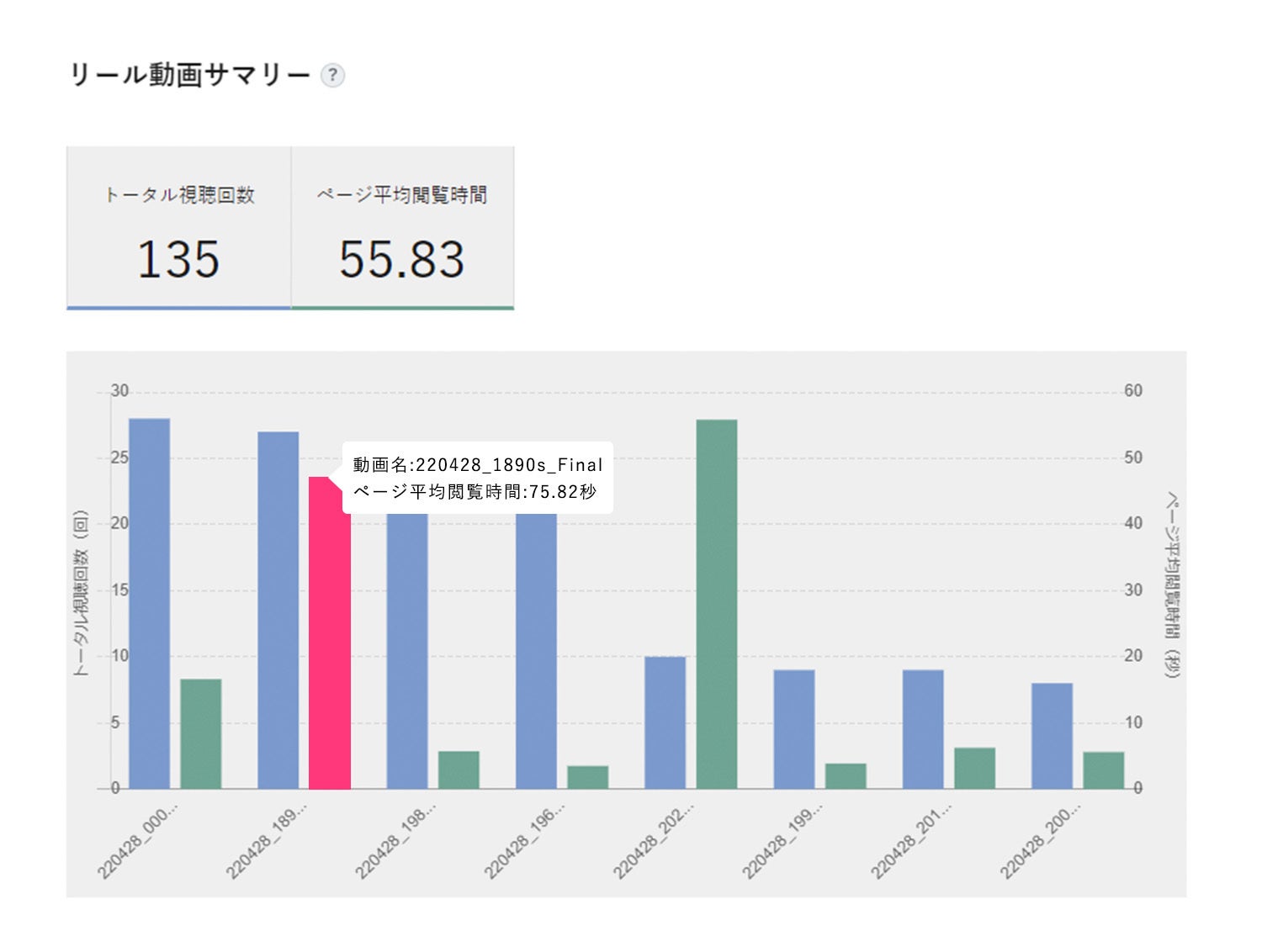 【特徴4】リールの総再生数/動画毎の再生数/動画毎の閲覧時間などをまとめた「レポート機能」で動画の成果が分かる!