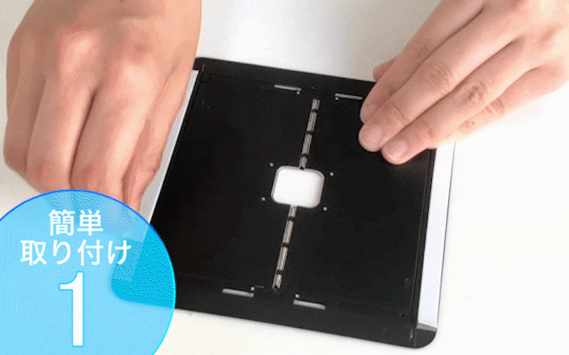 step3:付属品の滑り止めゴムパッドを四隅に貼る。