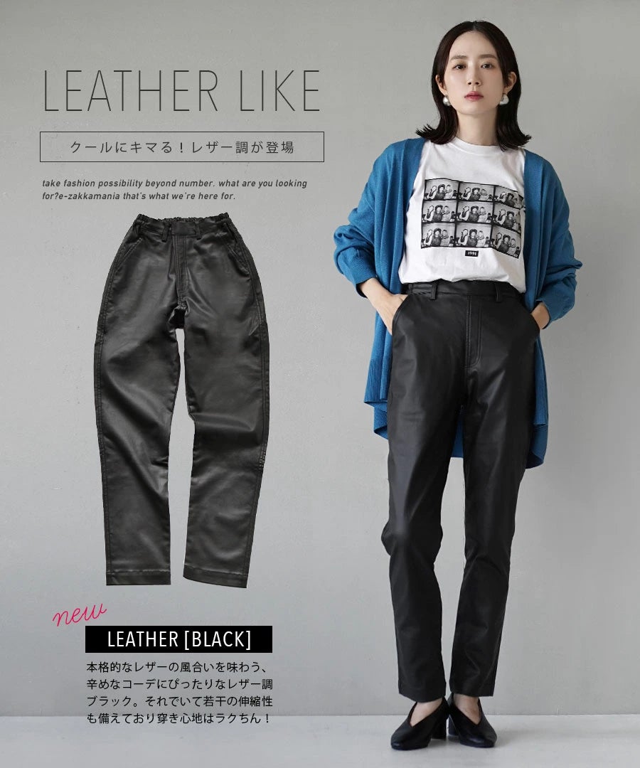 従来のレザーパンツの概念を覆す、快適な穿き心地と洗練されたデザインにより、トレンド感のある着こなしをストレスフリーで楽しめます。