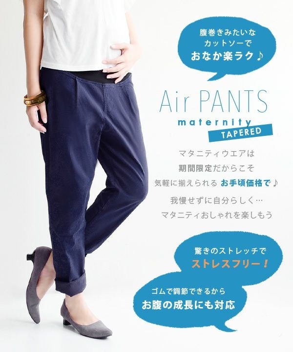 エアパンツシリーズではマタニティウェアもご用意。驚きのストレッチ性で、スキニーでありながら足がむくんでもきつさを感じにくい。