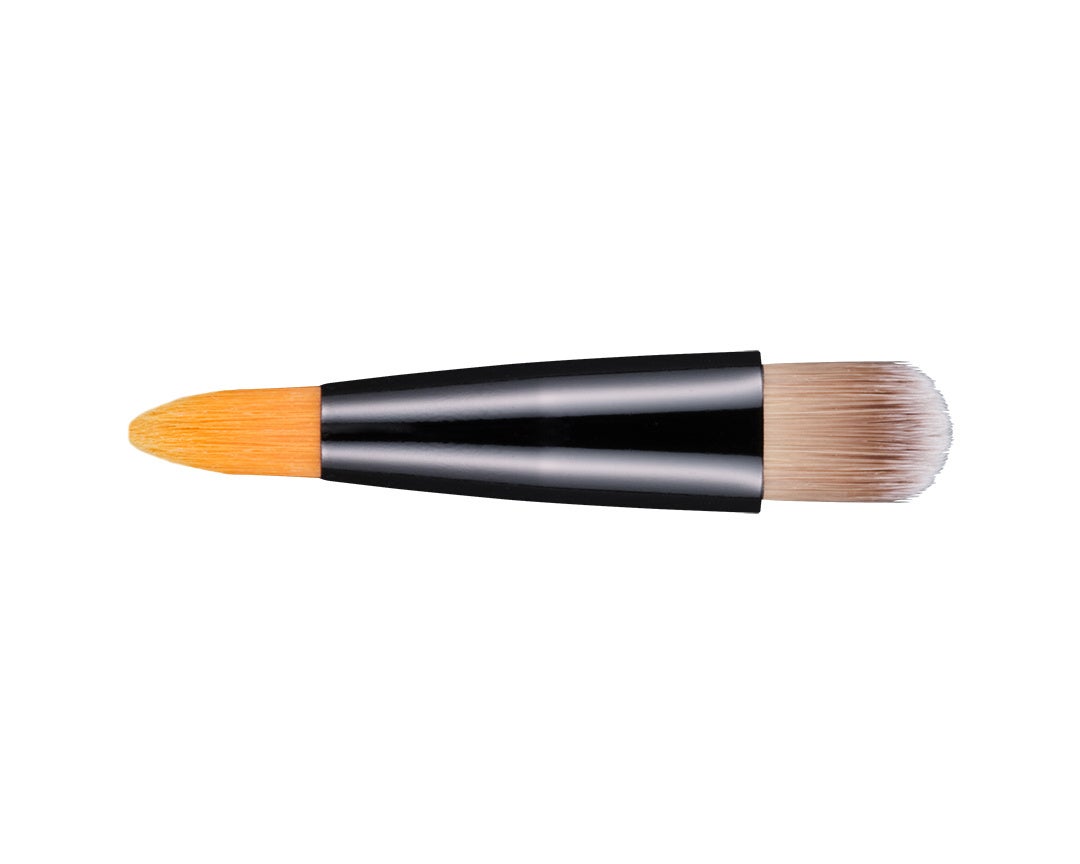 目の下にピタリとフィットするクマ用の平筆と、先端がやや尖っていて、コシのあるシミ・そばかす用ブラシの2種類が付属。 いずれもテクニックいらずで、お悩みをカバーできるように設計されています。