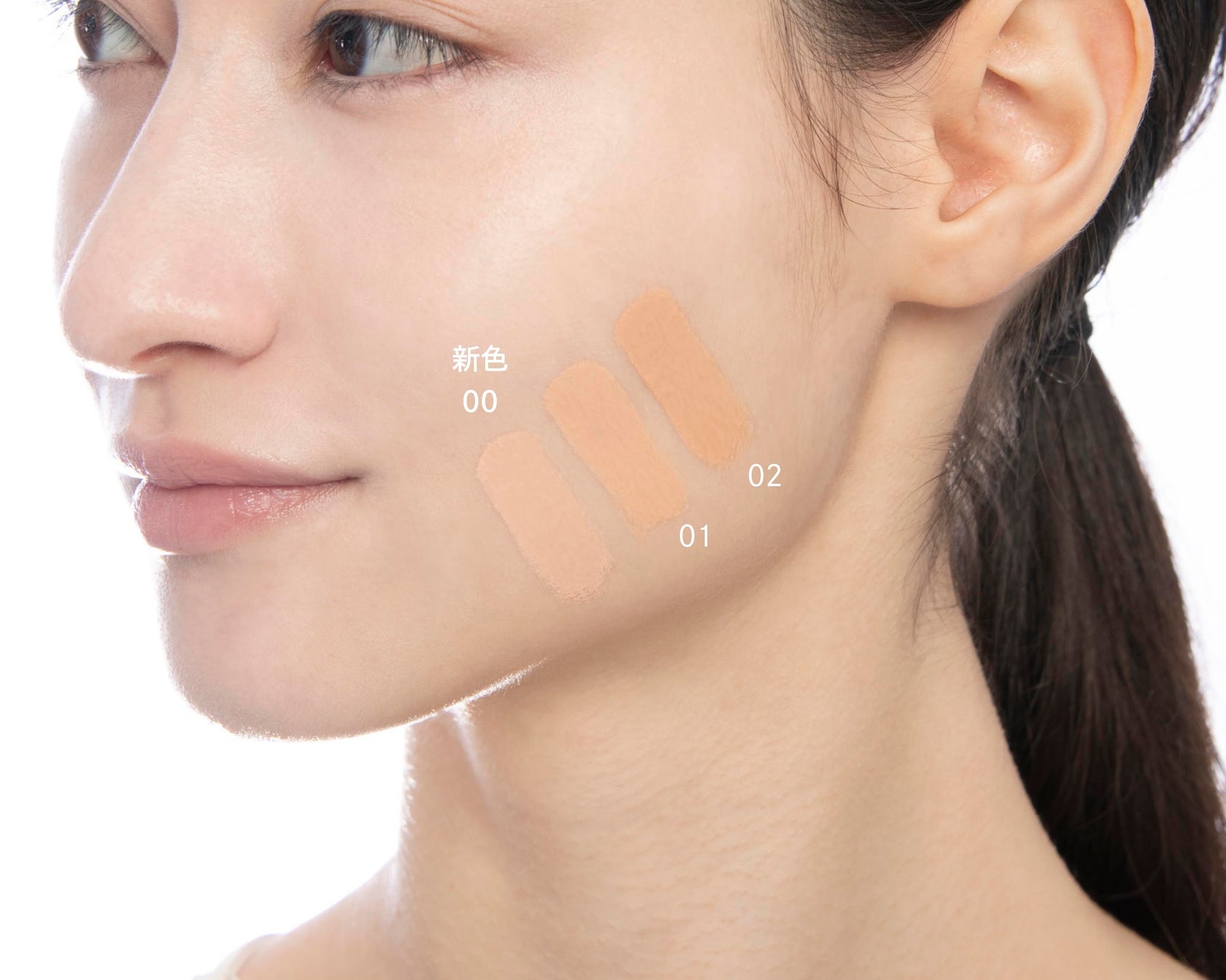 従来の01・02カラーに加え、ハイライト効果のあるアイボリー系カラー:00が新発売。01よりも明るいアイボリー系カラーなので、スキントーンの明るい方やハイライト効果をプラスしたい方におすすめ。