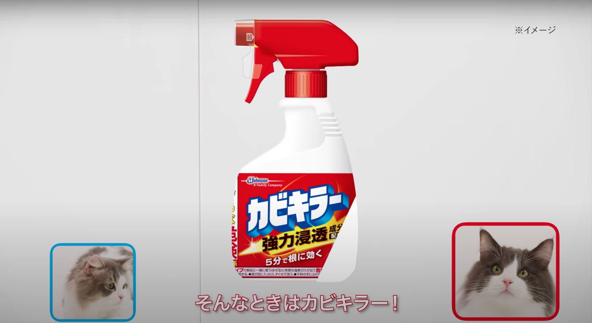 ジョンソン株式会社様の商材「カビキラー」WEB CMに、エムドッグス様所属の猫モデル、ラガマフィン と、ノルウェージャンフォレストキャットをキャスティングいたしました。