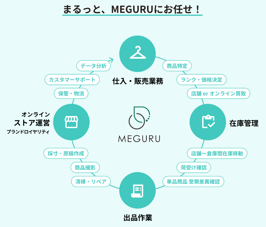 NOVASTO(ノヴァスト)が提供する、中古市場への参入を支援するサービス「MEGURU」が、オンラインショップへの出品代行も自社で請け負える様サービスリニューアル