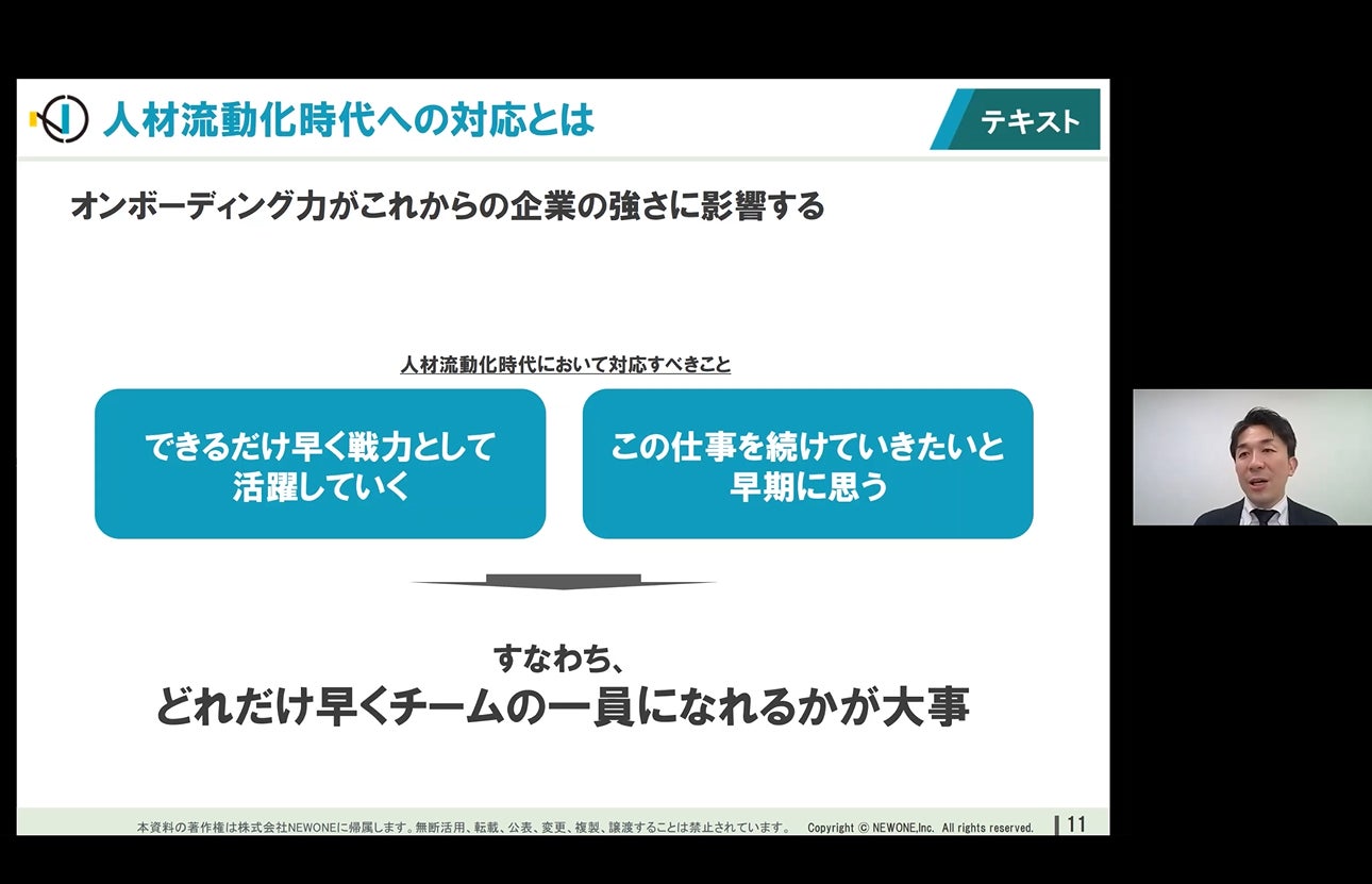 また、昨今人的資本経営が注目され、人材の価値を最大限に引き出すことが求められる中、中途採用者をいかにオンボーディングしていくかが、これからの企業の「組織力」と言っても過言ではなく、特に管理職には、オンボーディングを理解した上でのマネジメントが求められます。