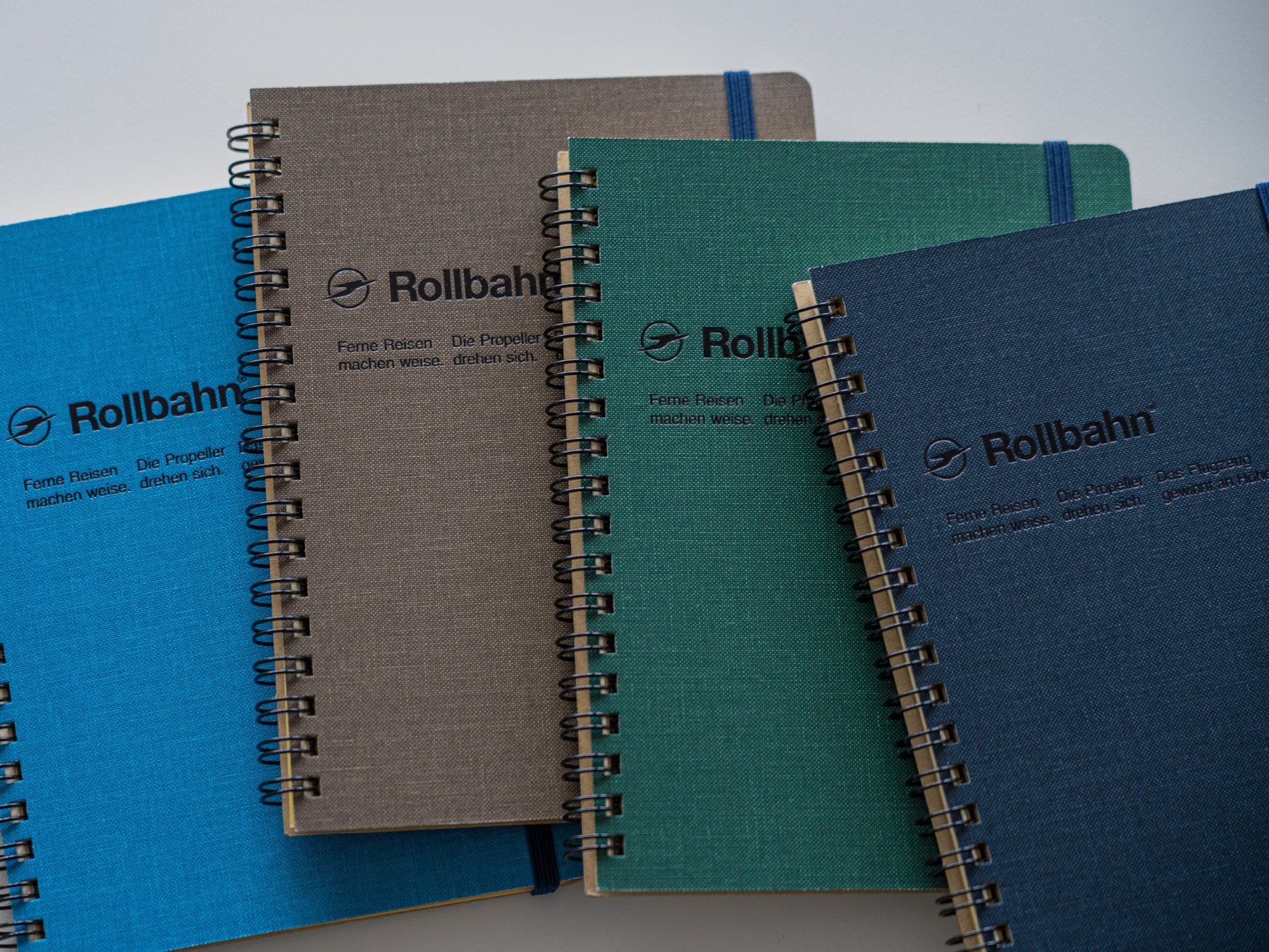表紙は布生地のような、手になじむ質感。カラーは深みのある色合いが上品なグレージュ、ダークブルー、ブルー、グリーンの4色展開で、ポイントに黒の箔押しロゴを施し、シックな印象に仕上げています。