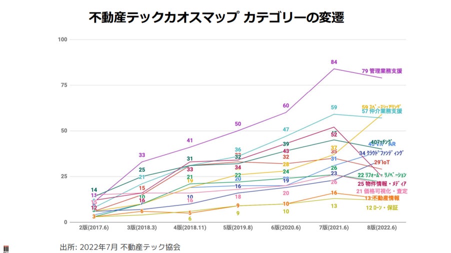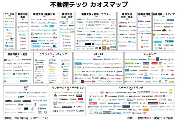 不動産 × IT を促進する一般社団法人不動産テック協会[以下、不動産テック協会:代表理事 滝沢 潔(株式会社ライナフ 代表取締役)、同代表理事:巻口 成憲(リーウェイズ株式会社 代表取締役)]は 2022年8月8日(月)カオスマップ部会によるセミナーにて不動産テック カオスマップ第8版を発表いたしました。