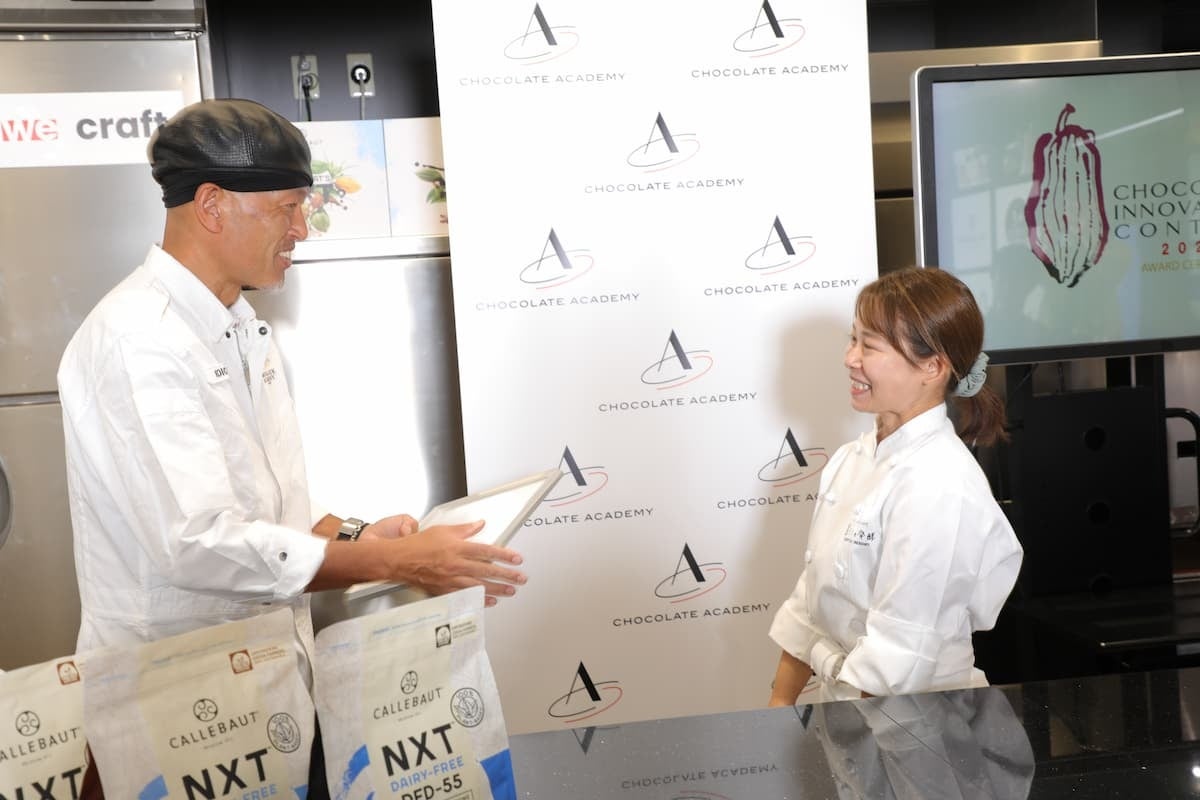チョコレートアカデミー™センター東京で開催された授賞式では、バリーカレボージャパン代表取締役社長のドゥルーヴ・バーティアから開会の挨拶として、協賛企業と関係者への謝辞を述べるとともに、ヴィーガンチョコレート作品に果敢に挑戦された受賞者に今後の更なる活躍に向けてのエールが送られました。その後、カレボーアンバサダーの和泉 光一シェフをはじめとする審査員よりトロフィーと賞状、また、作品づくりを通じて業界のイノベーションを共に支えていただくチョコレート イノベーションコンテスト オフィシャルアンバサダーに就任したことを示す認定証が授与されました。