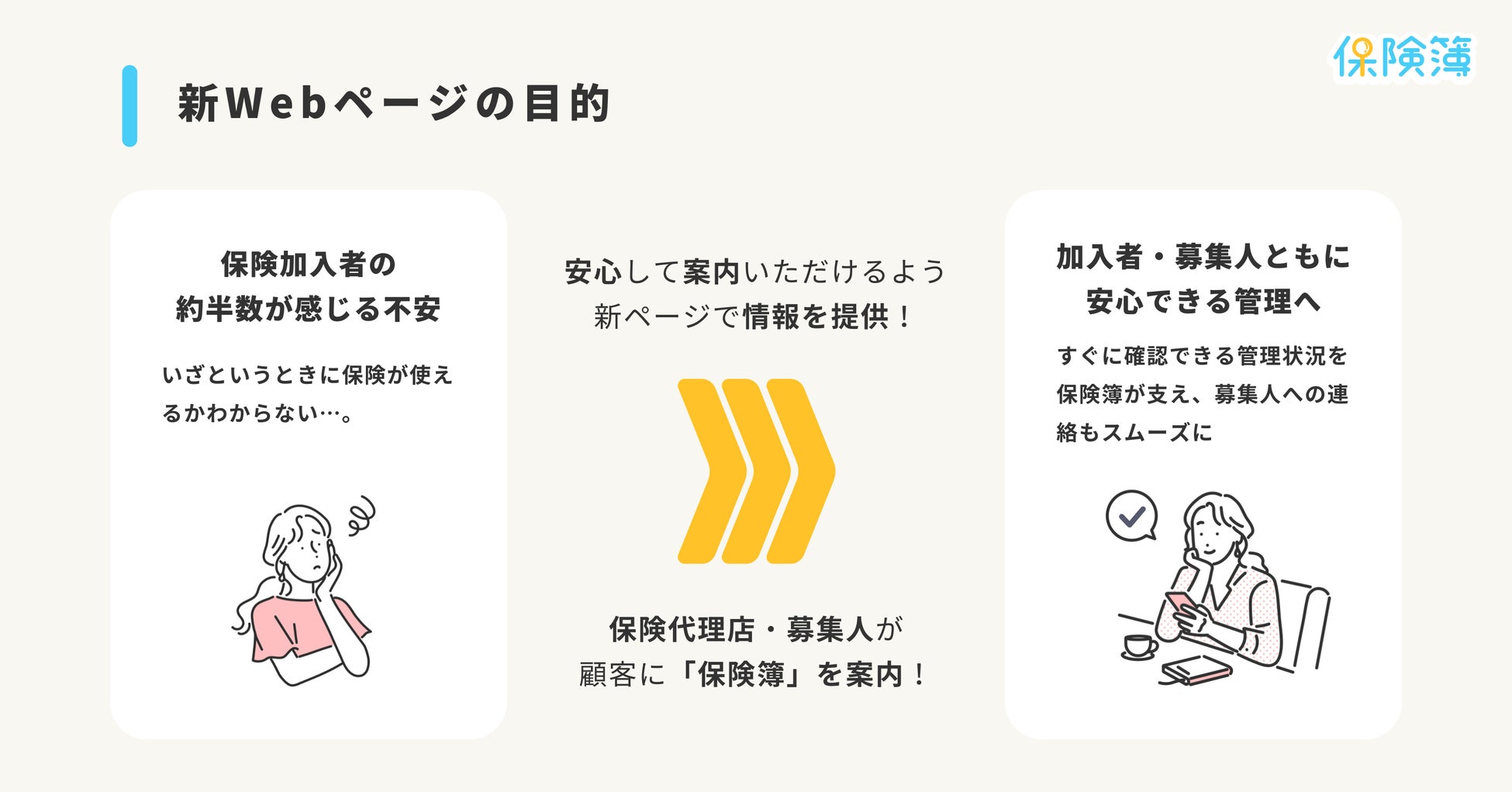 現在も「保険簿」の案内を推進いただいている保険事業者がいる中で、さらにこの取り組みを強化し支援するため、この度新しくWebページを公開いたしました。
