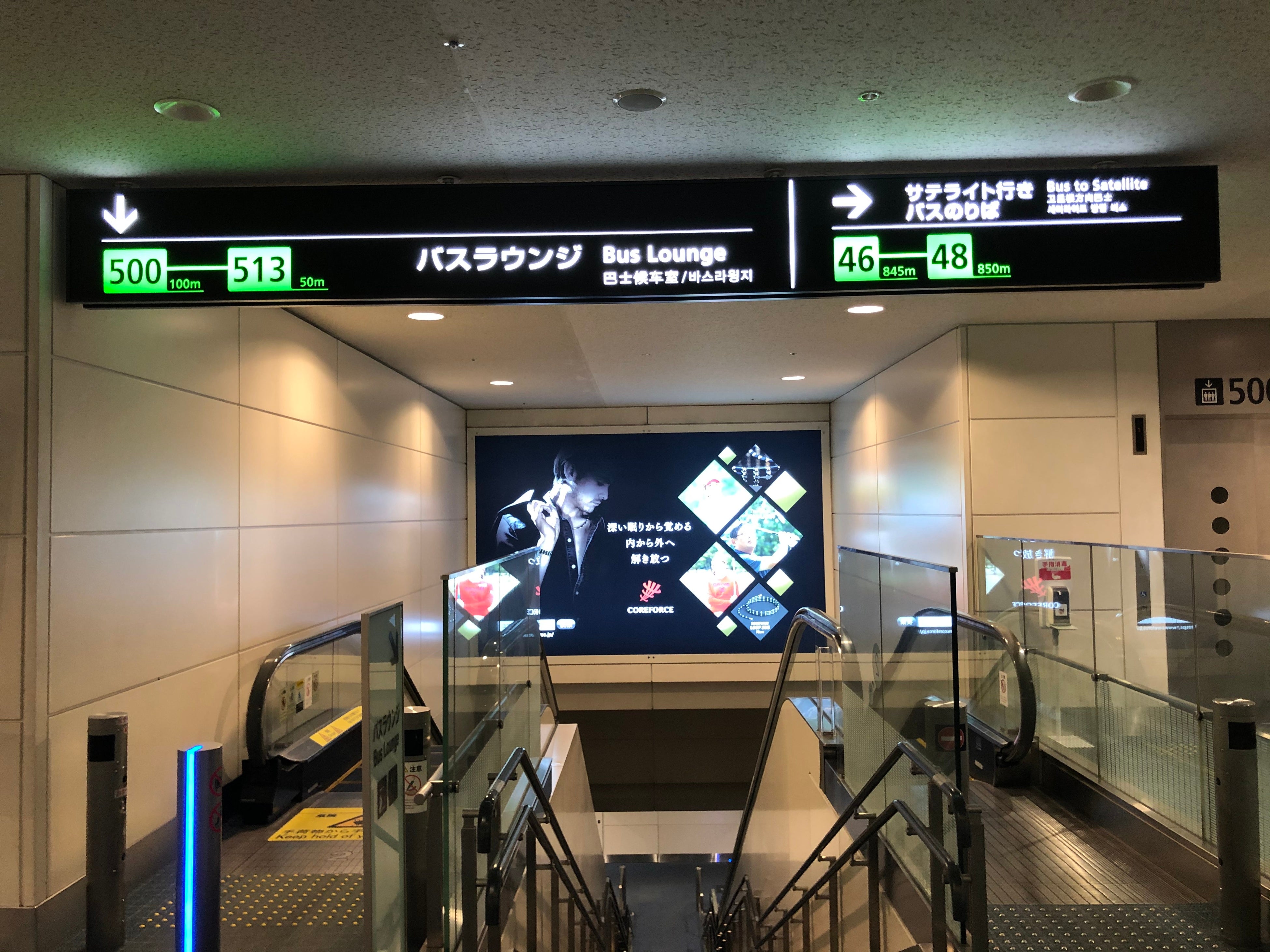 羽田空港第2ターミナルの大型電照看板は、2階北側バス出発ラウンジに向かうエスカレーター正面に位置している縦2790mm×横4380mmに渡る大型看板です。2階出発ロビーからも見える視認性も兼ね備えており、空港を使用される多くの方に見ていただけます。「コアフォース」を身につけ、凛々しい表情を魅せるプロの姿を、迫力ある大型看板で是非ご覧ください。