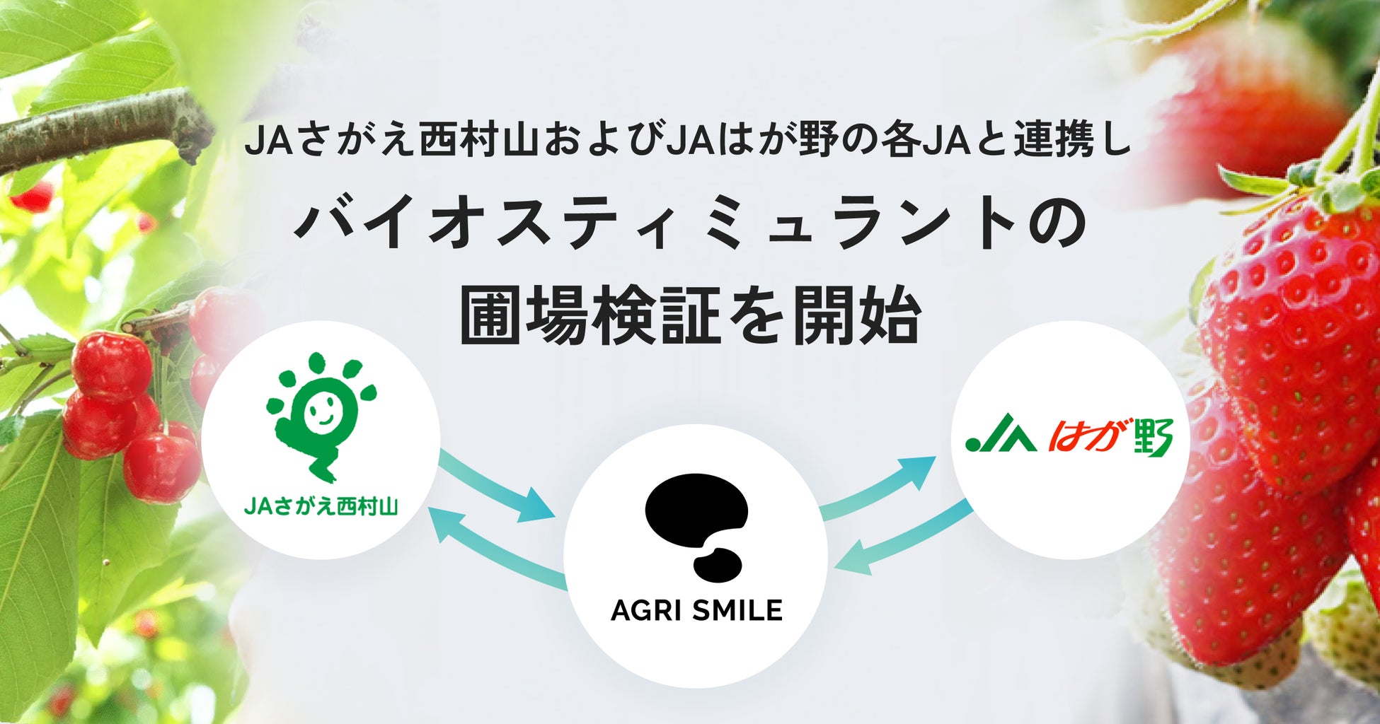 株式会社AGRI SMILEは、さがえ西村山農業協同組合(以下「JAさがえ西村山」)およびはが野農業協同組合(以下「JAはが野」)の各JAの管内において、バイオスティミュラント資材を活用した圃場検証を開始しました。なお、本活動は農林水産省の実施する「グリーンな栽培体系への転換サポート」事業に採択されています。