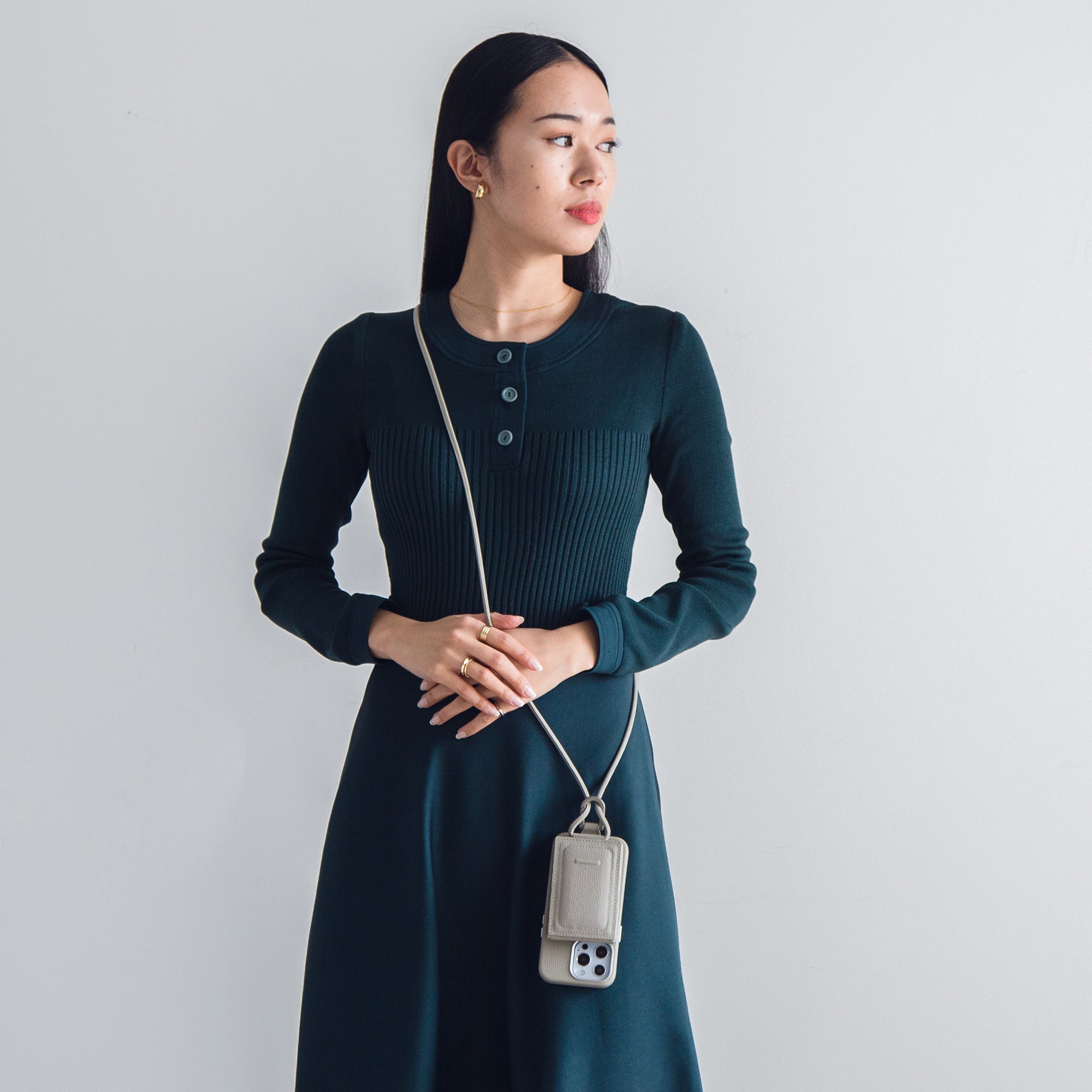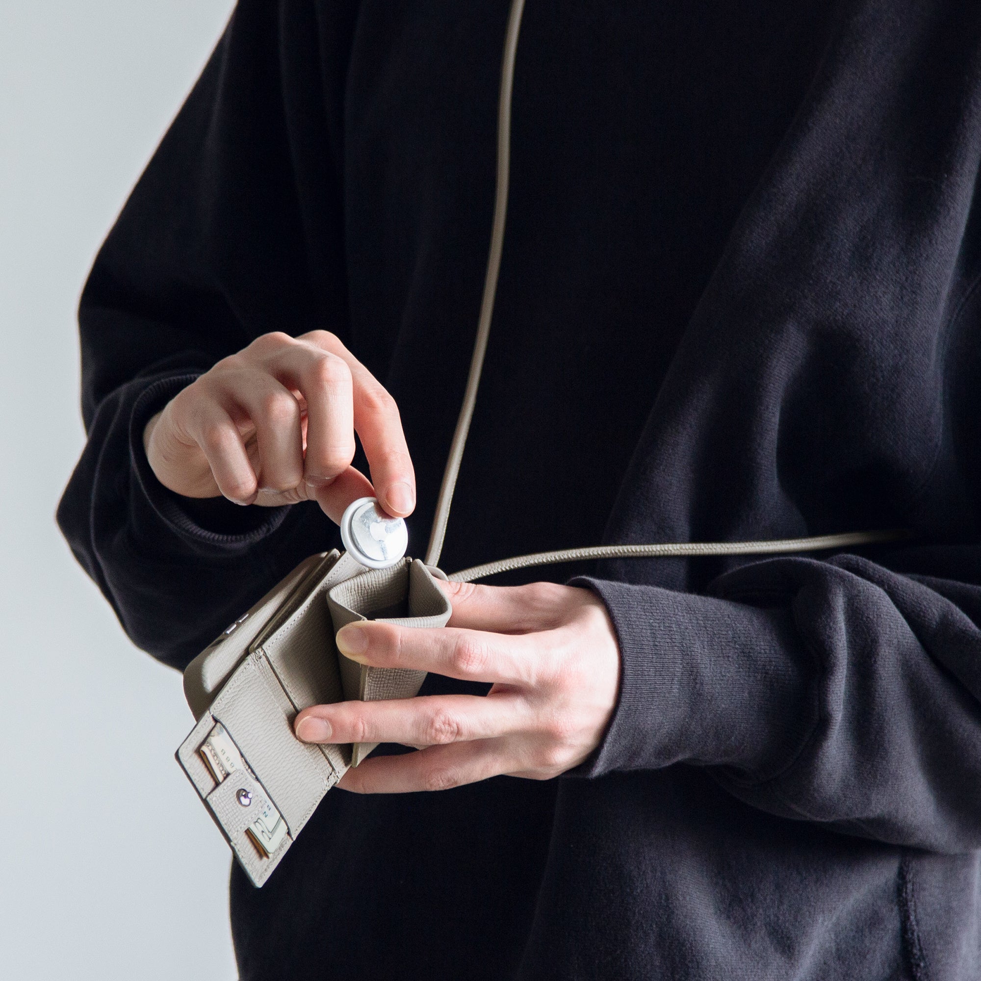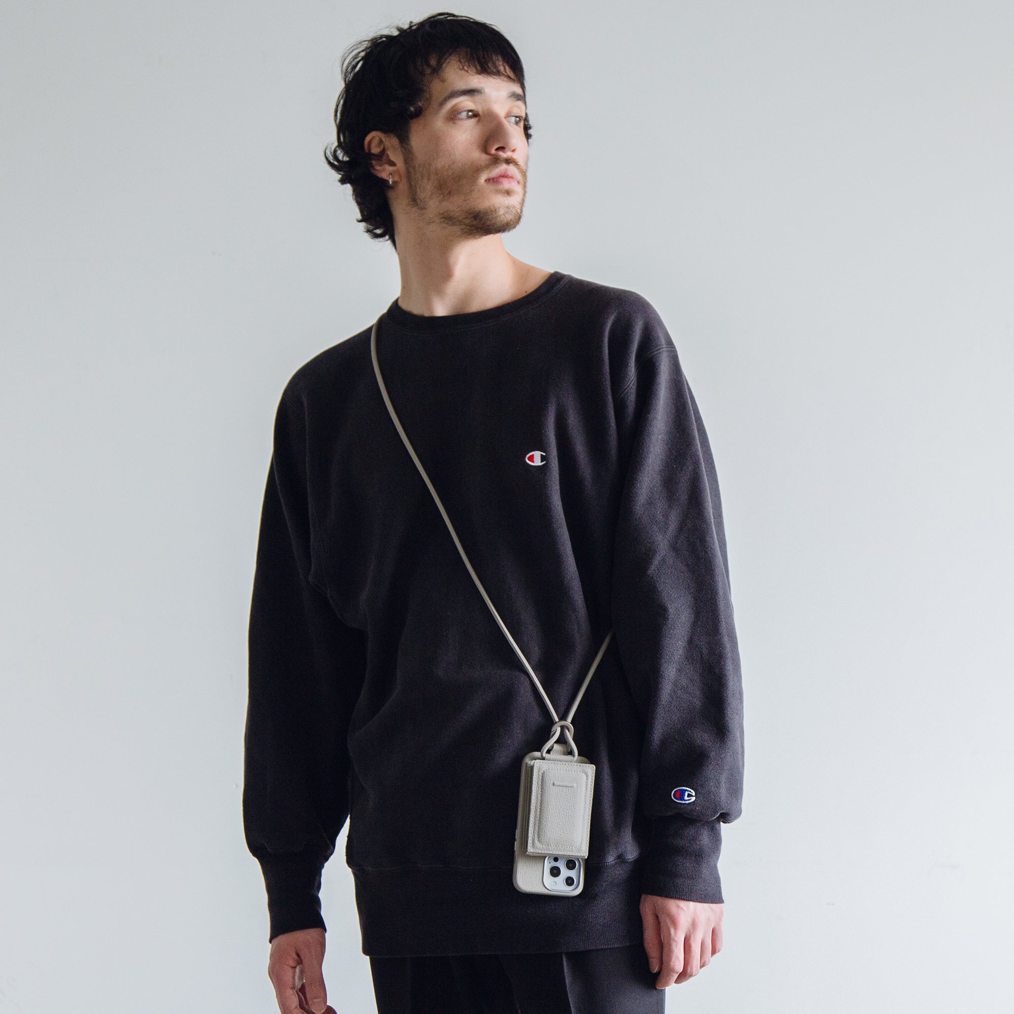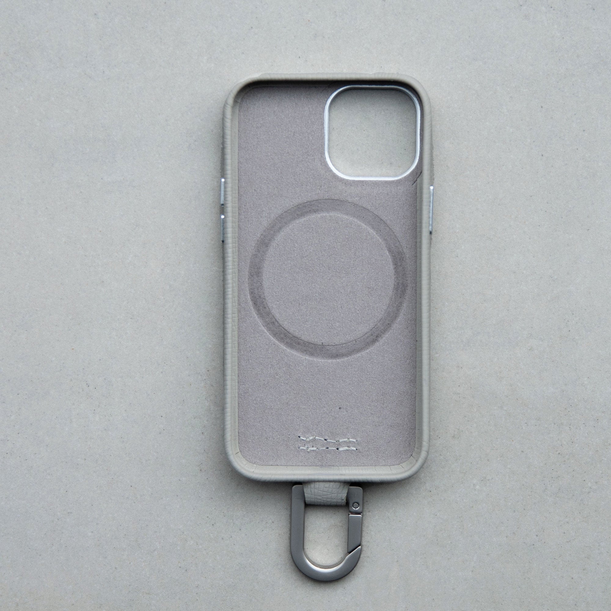 持ち歩く際は、下部に設けたカラビナにストラップを通すことで安心して身につけられます。iPhoneをポケットから出し入れすることなく、シームレスにデバイスの操作に移れるため、会計時や改札でのスムーズな決済が可能です。また、卓上に置く際などのストラップが不要な場面では取り外すなど、シーンに応じた使い分けられるデザインです。
