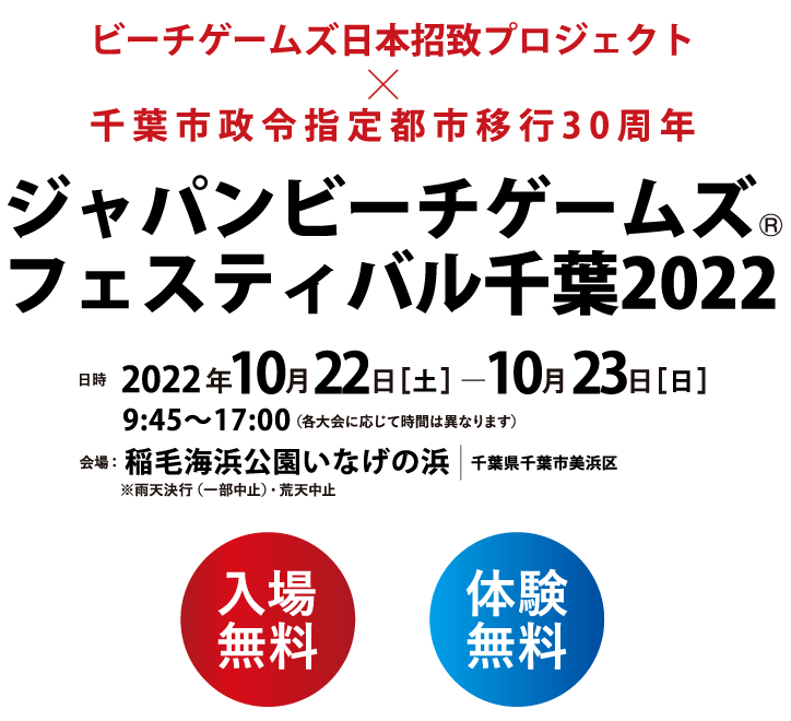 ■「ジャパンビーチゲームズ®フェスティバル千葉2022」大会概要(https://jbgf.jp/chiba2022/)