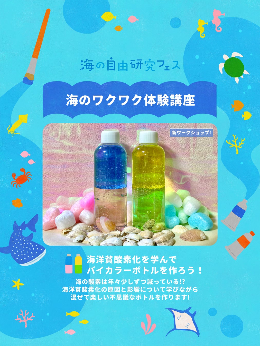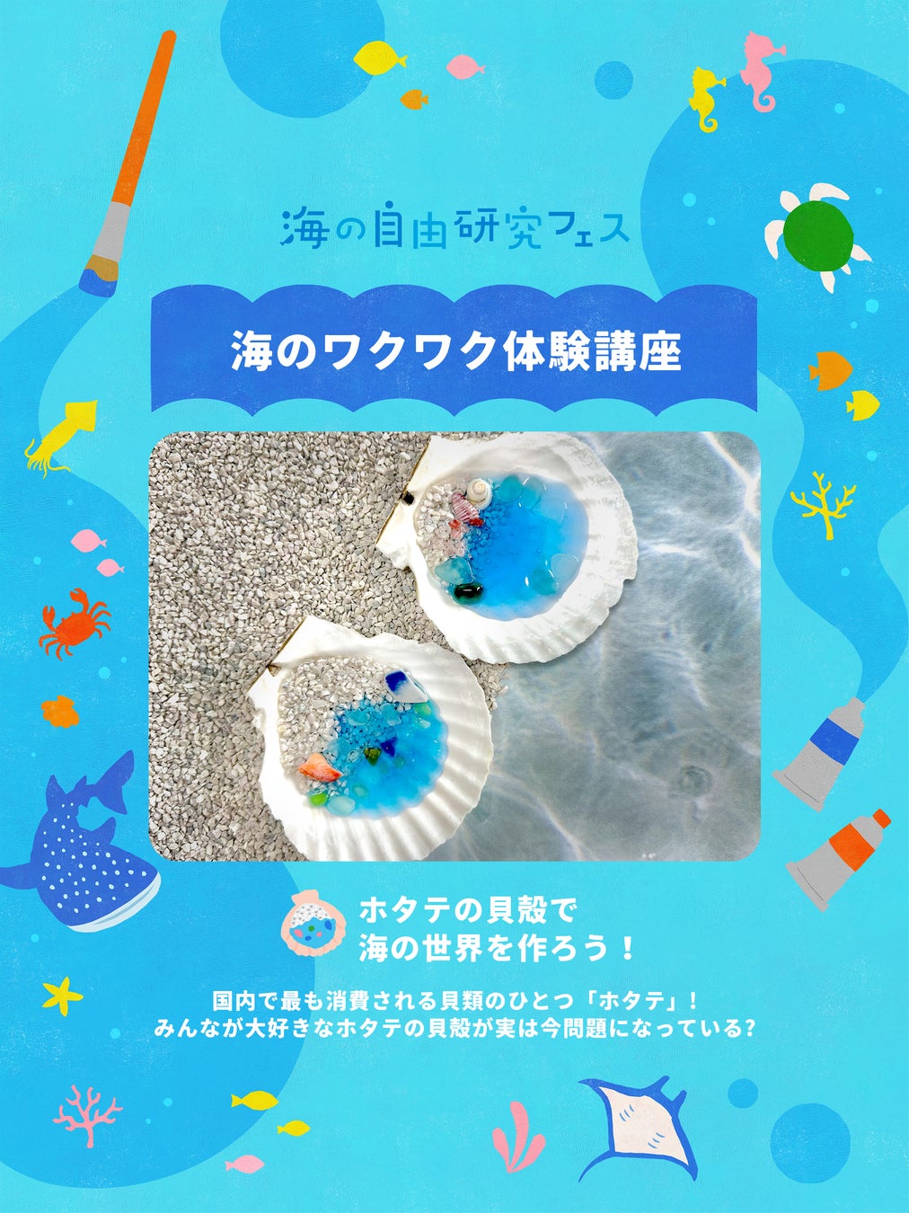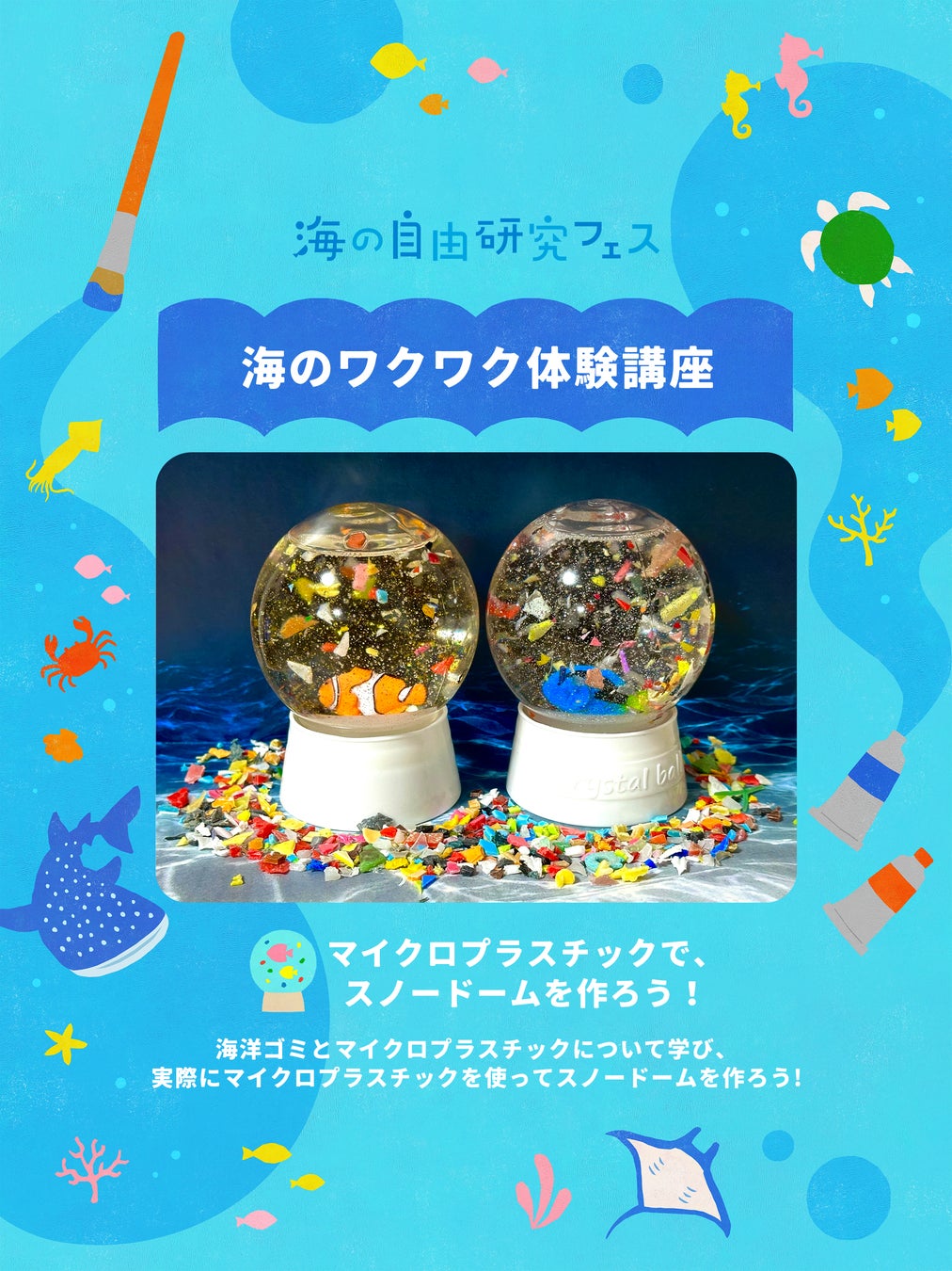 海の環境問題について学びながら、自由研究の作品も完成できるワークショップ。