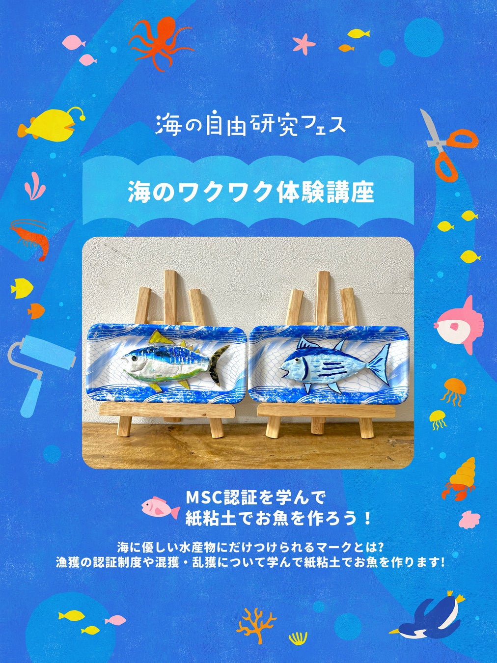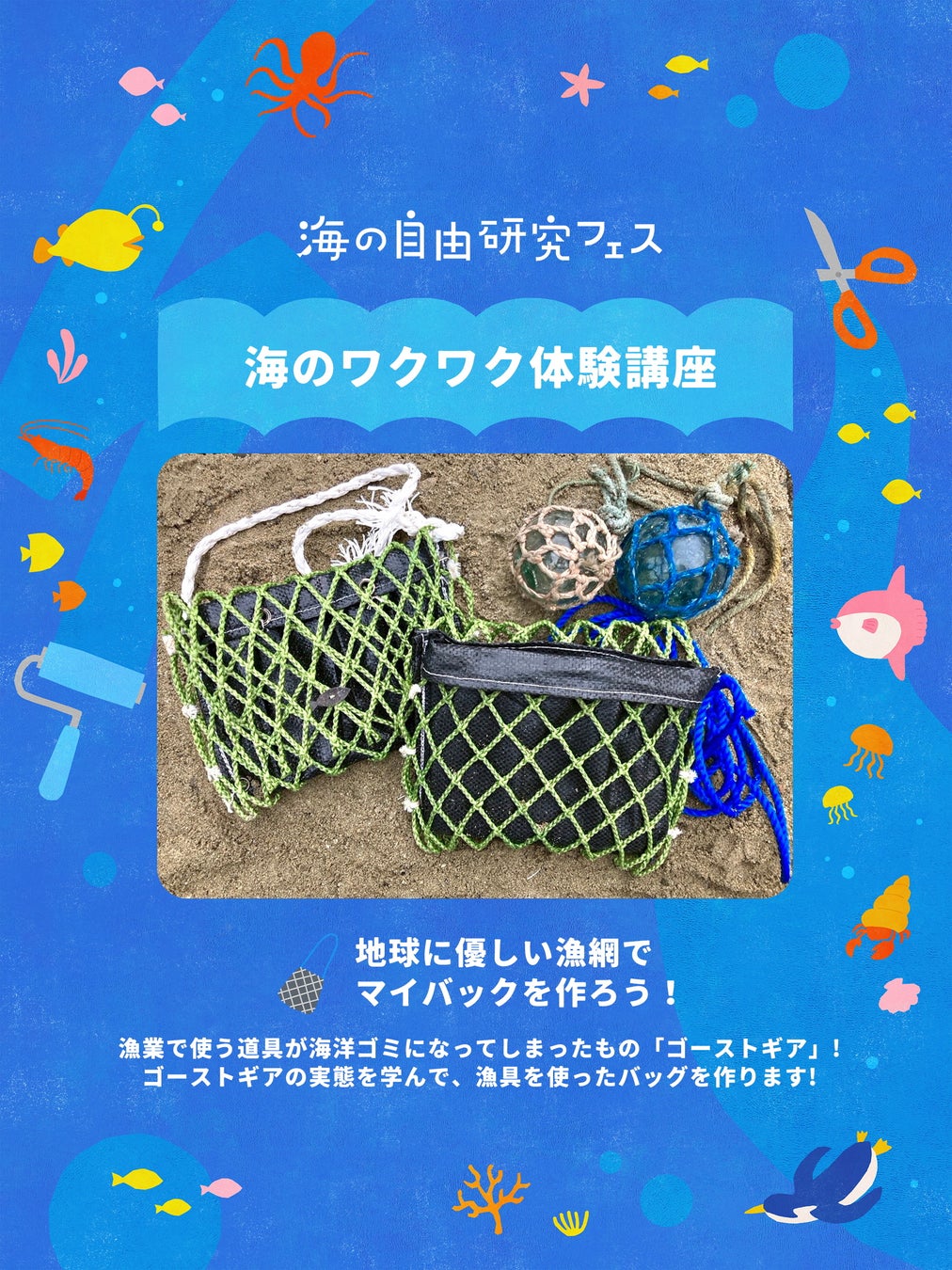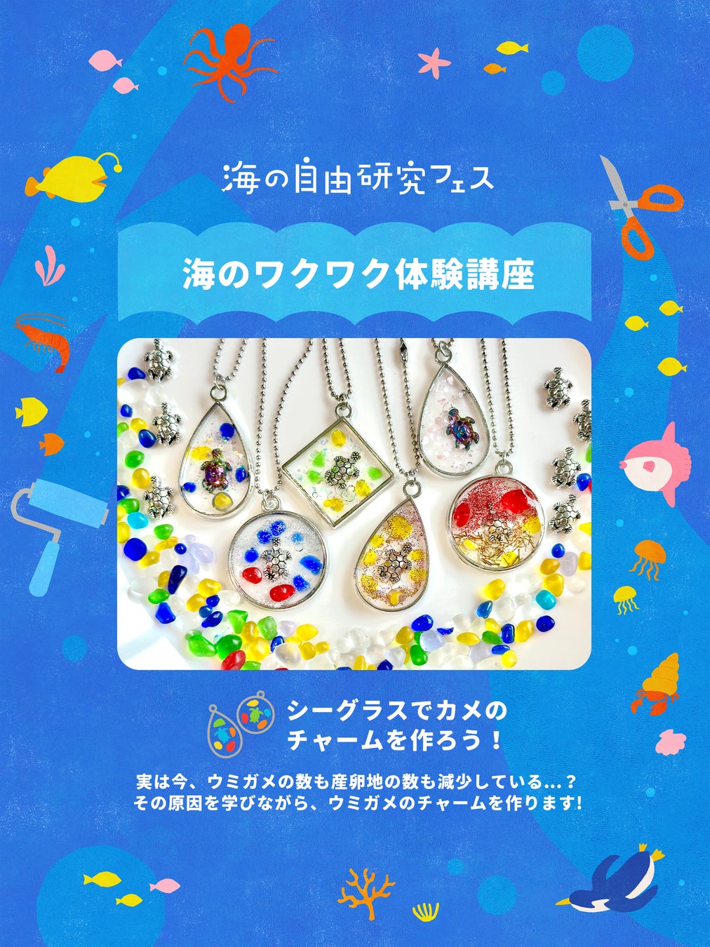 海の環境問題について学びながら、自由研究の作品も完成できるワークショップ。