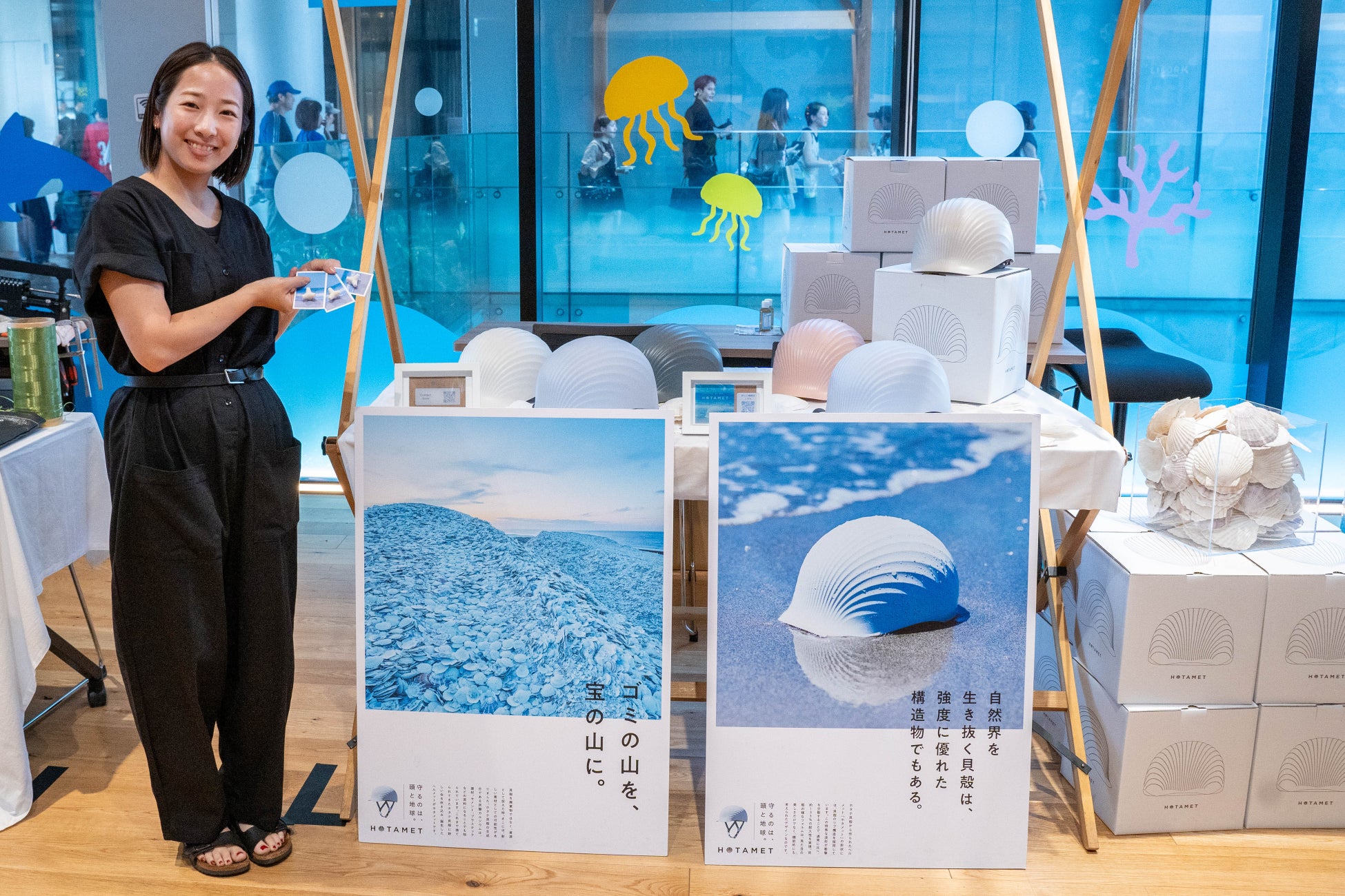 神⼾の⽔族館 “átoa”と共同制作した海ゴミアクアリウムを展⽰。
