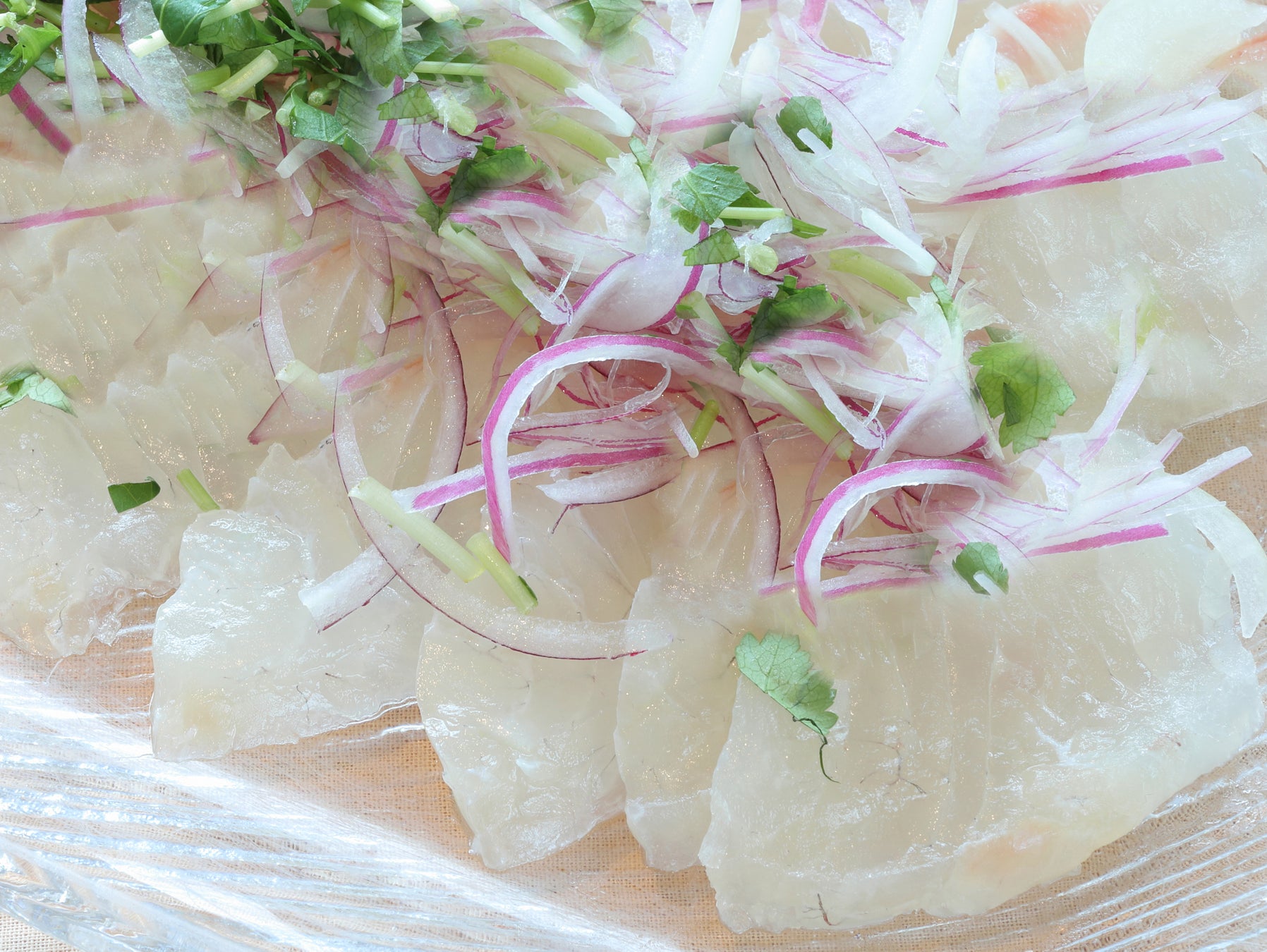 愛媛県産真鯛のカルパッチョ レモン風味の和風ドレッシング
