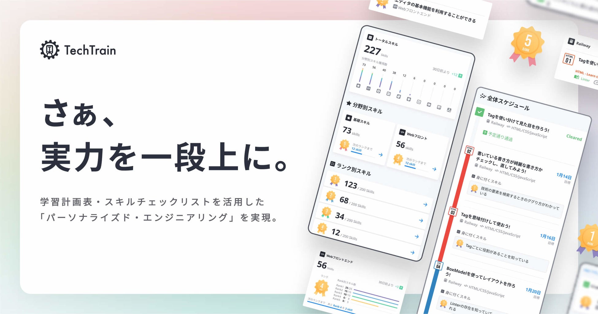 「さぁ、実力を一段上に。」TechTrain、ユーザー1人ひとりのレベルや希望に合わせた自動開発学習プランを公開。