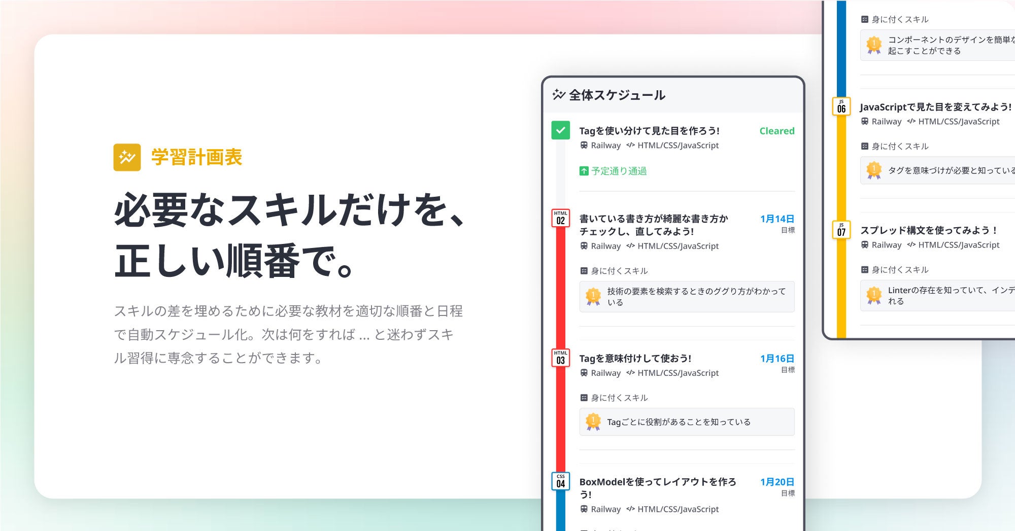 - 新機能②:学習計画表 「必要なスキルだけを、正しい順番で。」
