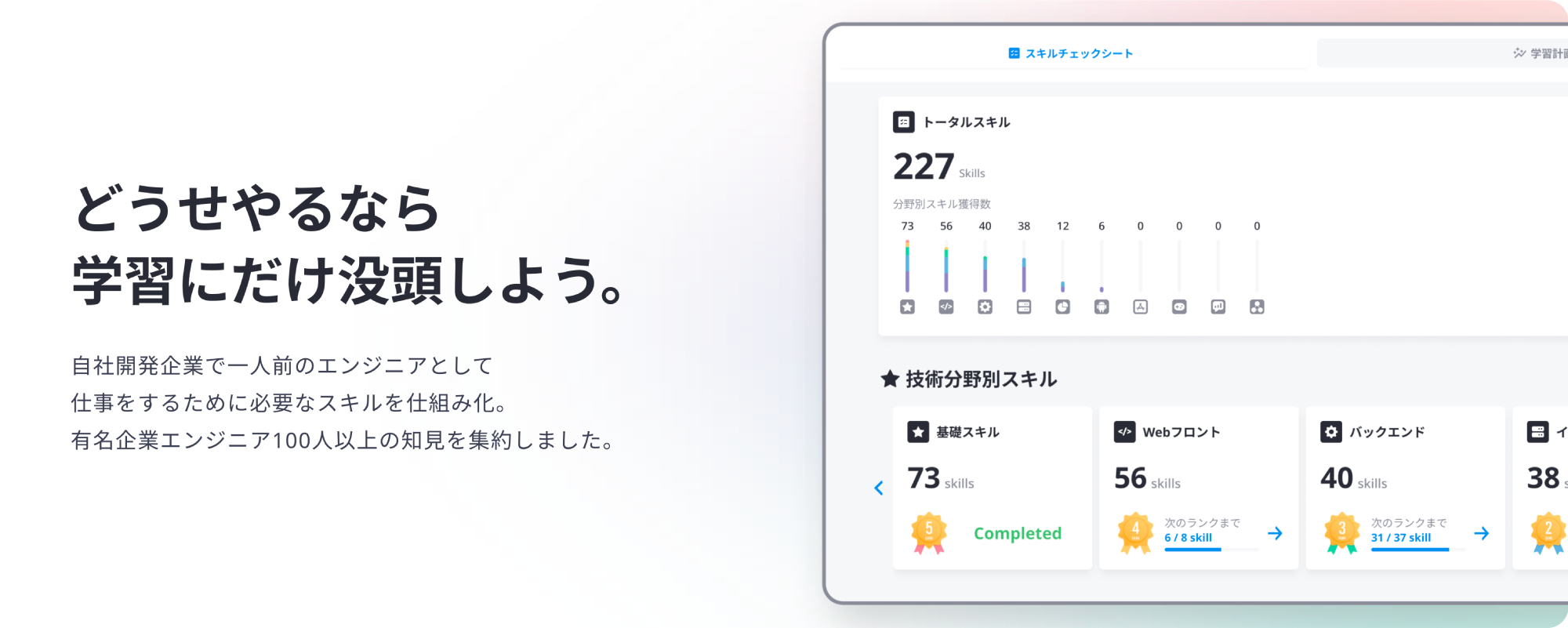 今回の新機能「スキルチェックシート」と「学習計画表」を活用し、従来ブラックボックスになっていた「未経験からエンジニアになれるのか」という問題の解像度を高め、情報を透明化し、「エンジニアリングで日本の国力を上げる」というMISSIONを実現してまいります。