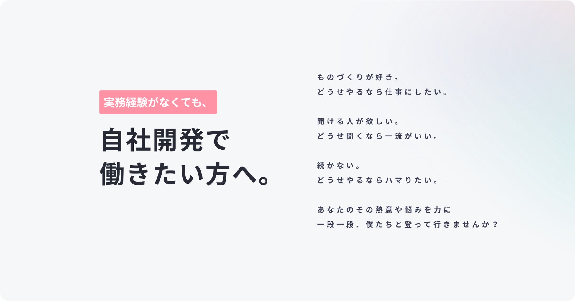 - 自社開発企業で働きたいが、スキルに自信がない。
