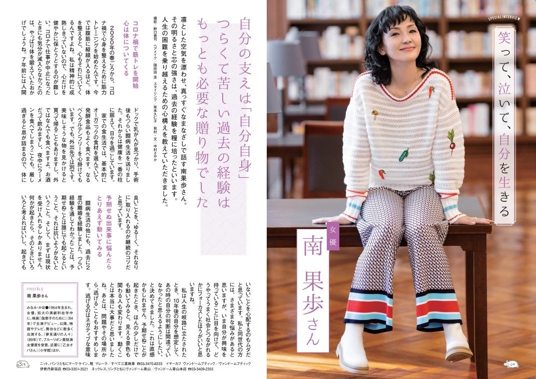 凛とした空気を漂わせ、真っすぐなまなざしが印象的な南果歩さん。その明るさと芯の強さは、過去の経験を糧に培ったといいます。人生の困難を乗り越えるための心構えをお話しいただきました。