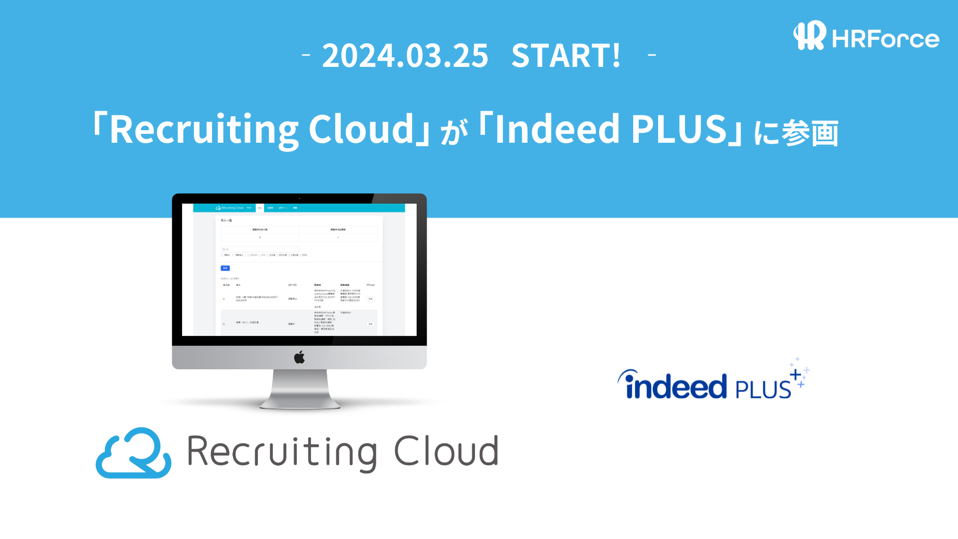 HR Forceが提供する採用マーケティングツール「Recruiting Cloud」が「Indeed PLUS」に参画