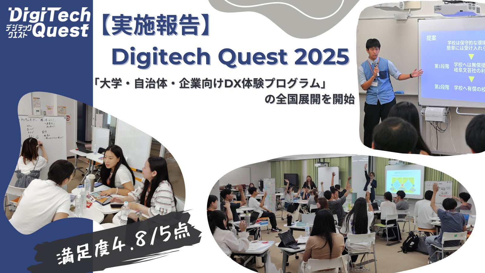 株式会社ウォーカー(本社:東京都文京区、代表取締役:伊東雄歩、通称:ゆぽゆぽ)が運営する産学連携DXプログラム「Digitech Quest 2025」が岐阜大学にて開催され、参加満足度4.8/5、97%が「今後のキャリアに活かせる」と回答する高評価のうちに終了しました。