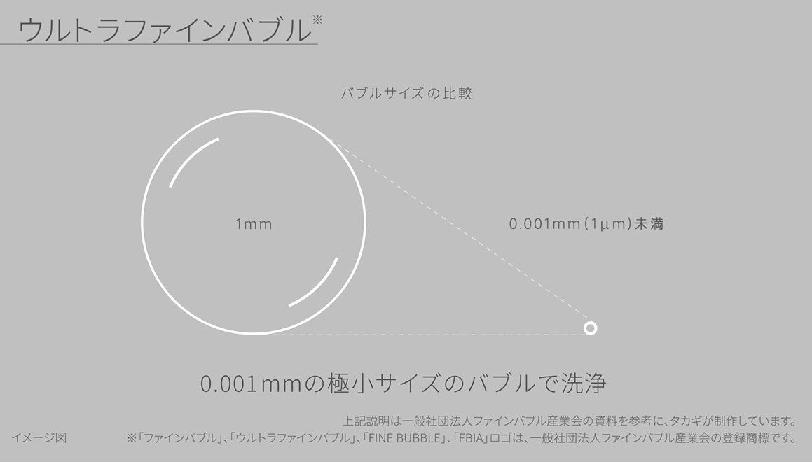 ※「ファインバブル」、「ウルトラファインバブル」、「FINE BUBBLE」は、一般社団法人ファインバブル産業会の登録商標です。