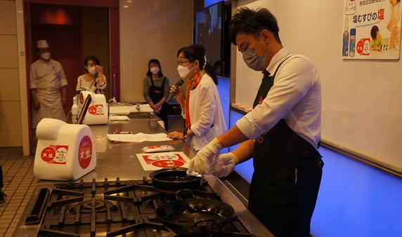 株式会社天塩(本社:東京都新宿区、代表取締役社長:鈴木 恵)は、4月6日「天塩 塩むすびの日」に先駆け、創立50周年を記念して4月5日(水)に服部栄養専門学校(東京渋谷区)にて親子参加型イベント「プロが教える塩むすび教室」を開催しました。イベントには13組の親子(大人13名、子供15名)が参加し、天塩の歴史や塩づくりの楽しさを幅広い年代の方に知っていただくために、土鍋を使った塩づくりや、塩を使った料理、50年前の食事体験や食事風景講義を行いました。