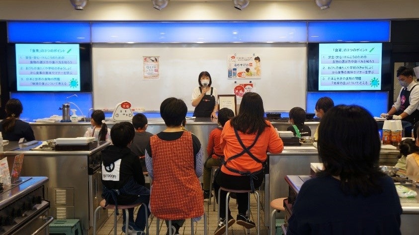 本イベントの最後に、日本食育インストラクター協会 増子雅代先生より50年前の食事風景に関する講義を実施しました。50年前と現在の食事に関する一番大きな違いとして、増子先生は「昔は家族団らんで食事をしながら会話も楽しんでいましたが、現代は子供だけで食事をする機会が増えています。できるだけ団らんの時間をつくり、今日あった出来事などをお話しする機会として食事の場を使ってほしいです。」と説明しました。今と昔の違いに驚きながらも、親子で会話しながら理解を深めている様子が