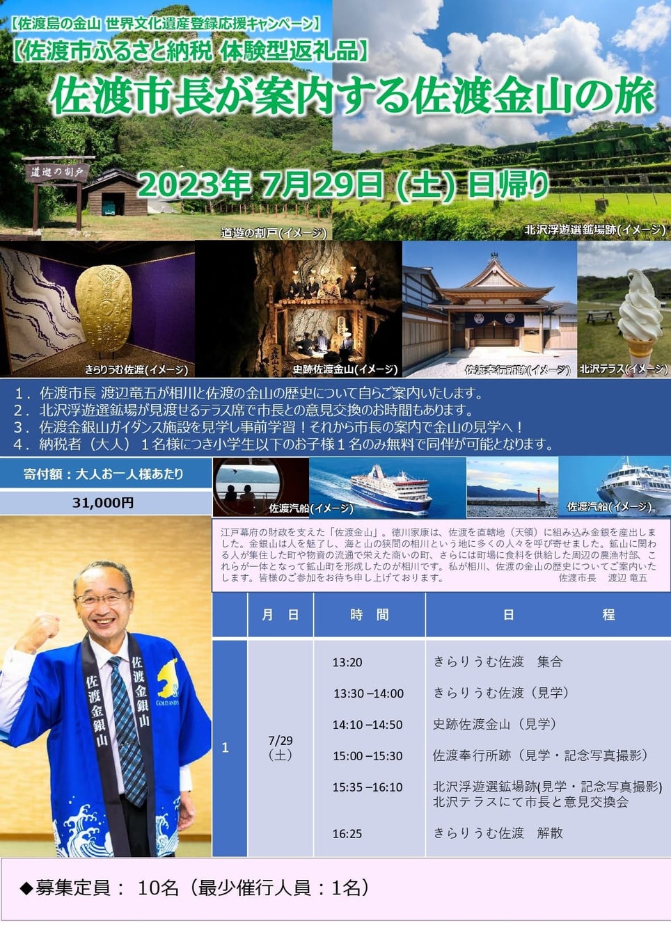 【先着10名】『佐渡市長が案内する佐渡金山の旅』の参加者を佐渡市ふるさと納税で募集します!!