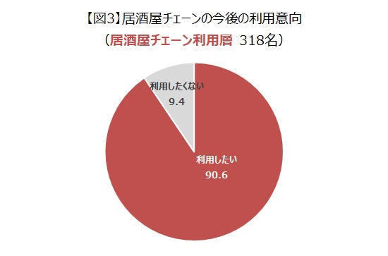 居酒屋チェーン利用者の今後の利用意向は9割(図3)。