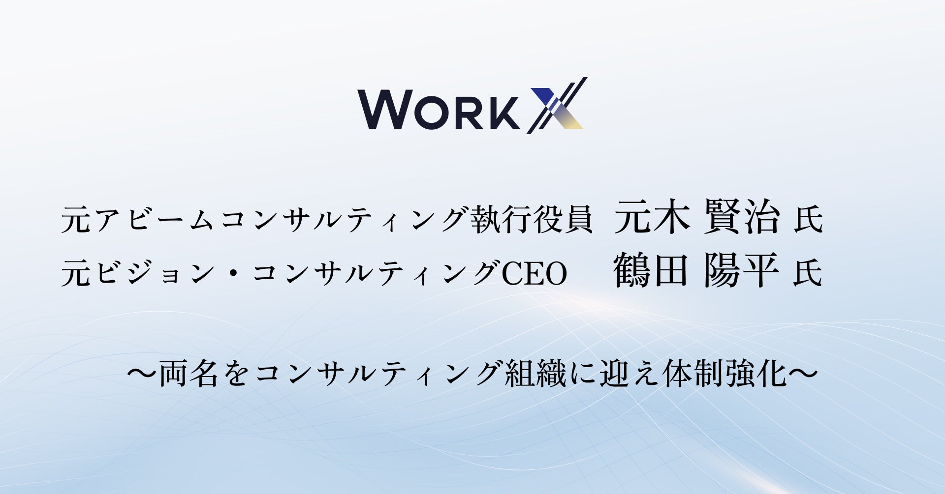 【WorkX】アビームコンサルティングにて執行役員を務めた元木氏と、ビジョン・コンサルティングにてCEOを務めた鶴田氏を迎え、コンサルティング組織の体制を強化