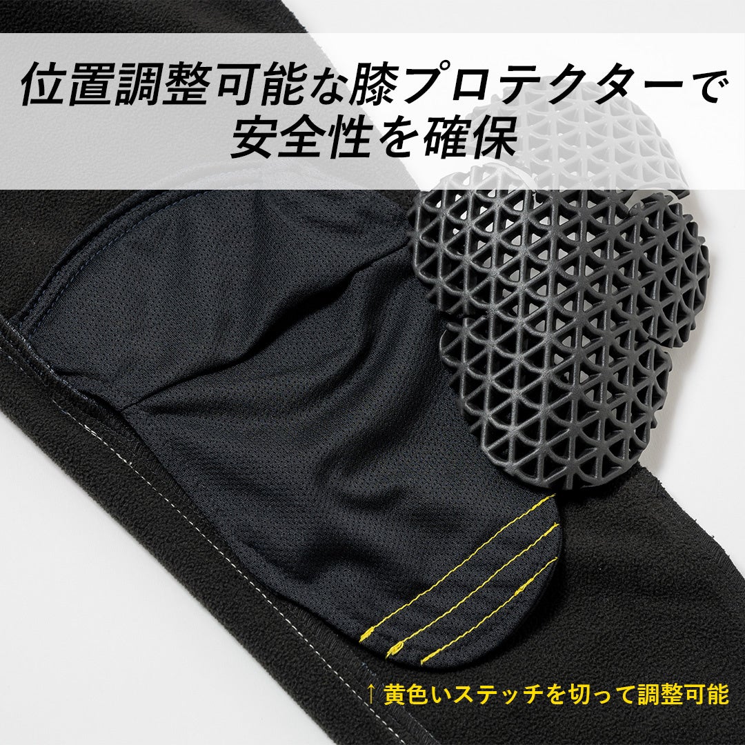身長や体型に合わせて、膝プロテクター袋にて位置調整が可能。