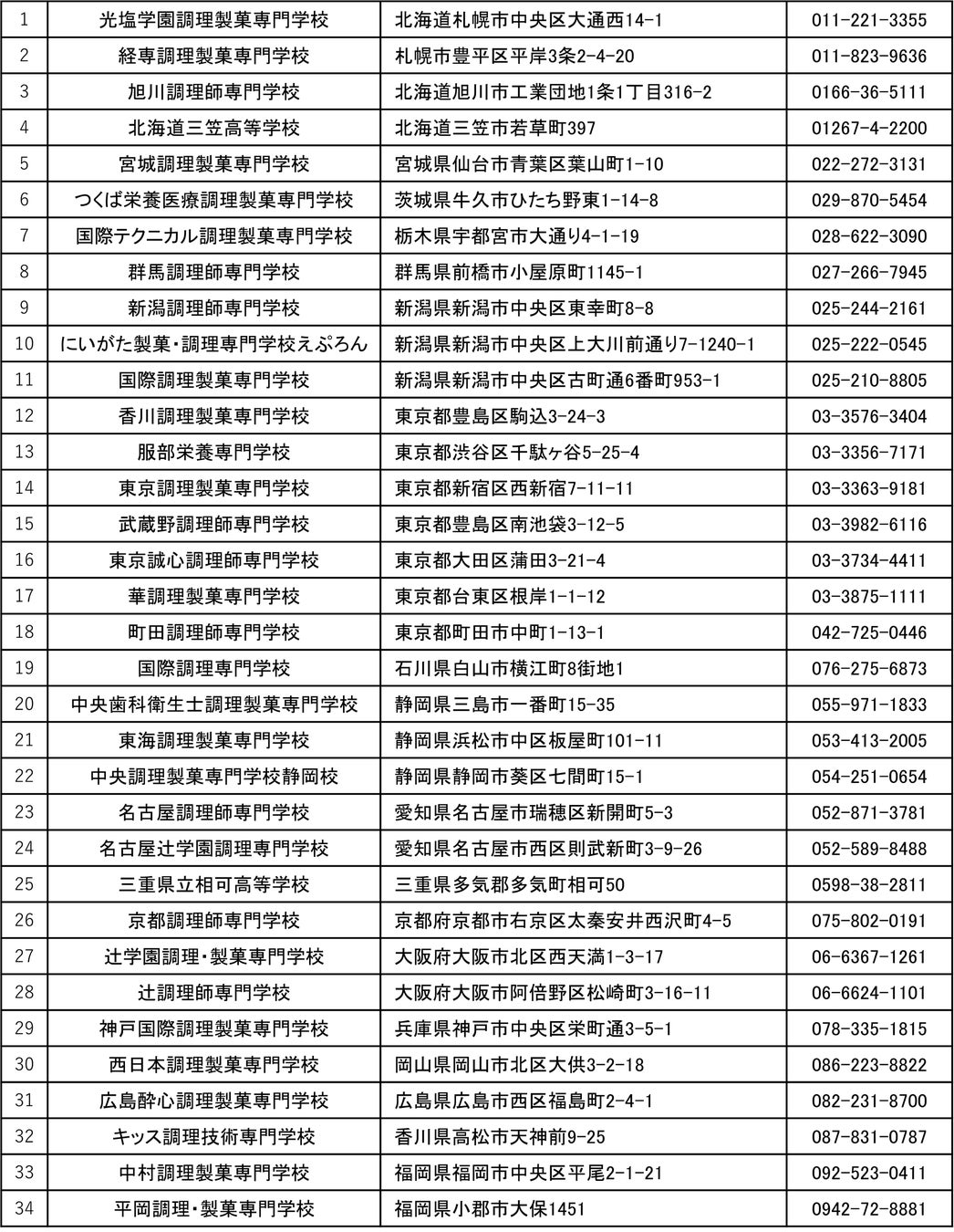 調理師学校卒業生の若手で活躍しているシェフ(下表)及び調理師学校の教員等