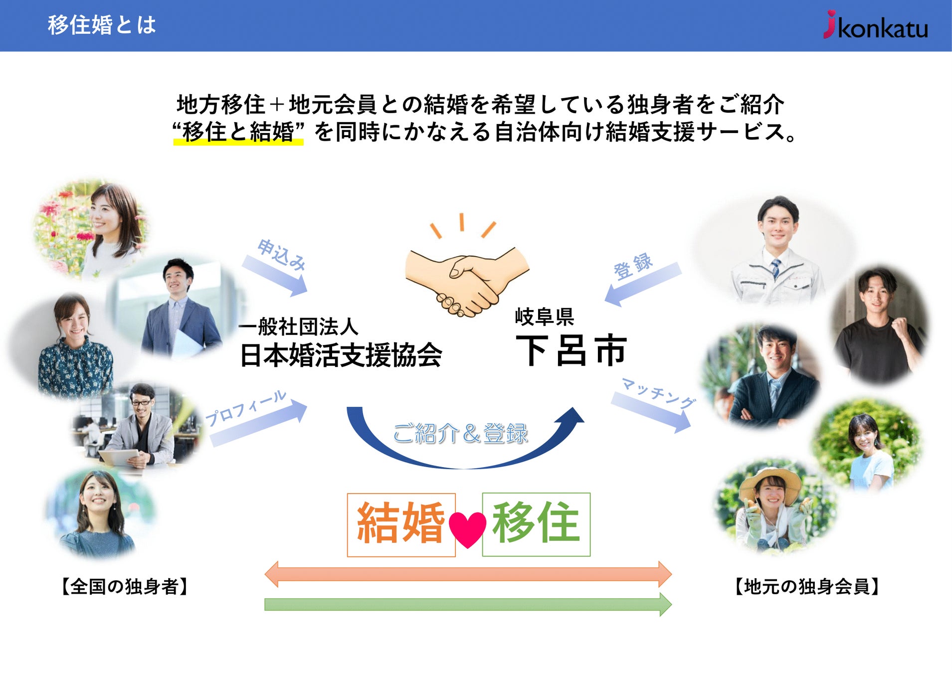一般社団法人日本婚活支援協会(所在地:東京都港区、代表理事:後藤 幸喜)は、移住先と結婚相手を同時に紹介する「移住婚」の提携先(受け入れ自治体)として、令和6年5月より岐阜県下呂市の受け入れが開始したことをお知らせします。